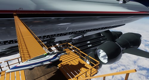 The space craft is from https://www.sharecg.com/v/72828/gallery/5/3D-Model/Class-II-Gallactic-Cruiser