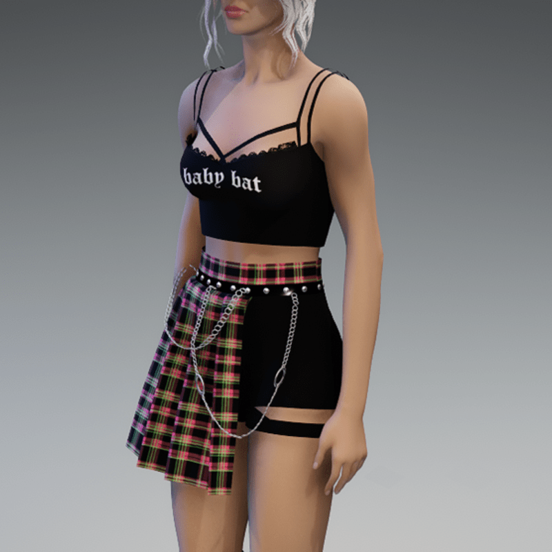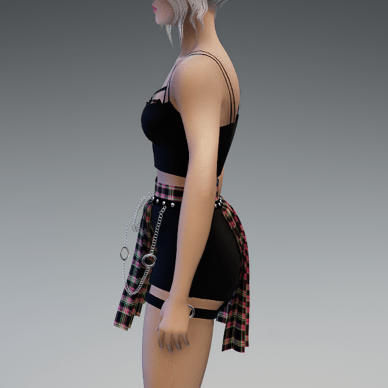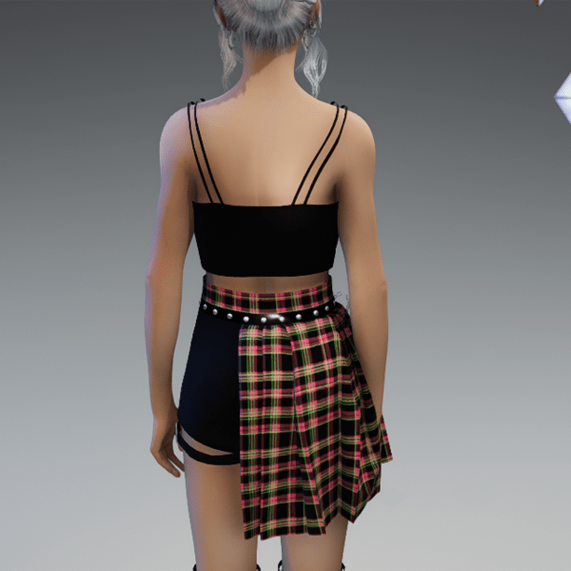 Half skirt, half short pants. It also comes with some chain-applications and a rivet belt. Enjoy! <3