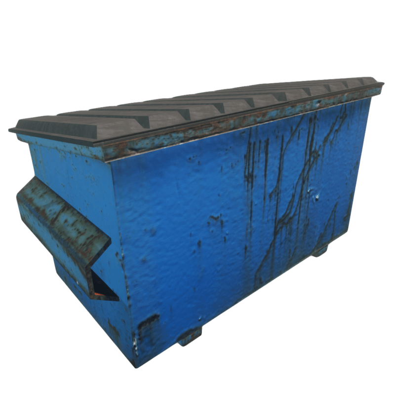 There is some rust on this blue dumpster. This one is closed you can't throw your junk or trash in it, it's full! polygons:382 vertices:212 (Includes collision mesh and PBR Texturing) Please rate if you want to support me. ;D You will find a open version in my shop: https://store.sansar.com/listings/7294addc-c4c6-4ecb-a2b2-0cde6fae55d3/dumpster-open Check my experience: https://atlas.sansar.com/experiences/plaggy/selfexit-wip If you have a question or feeling dizzy please do not hesitate to contact me at Sansar Discord or via Email (plaggy.net@gmail.com). I will be happy to help you ;D