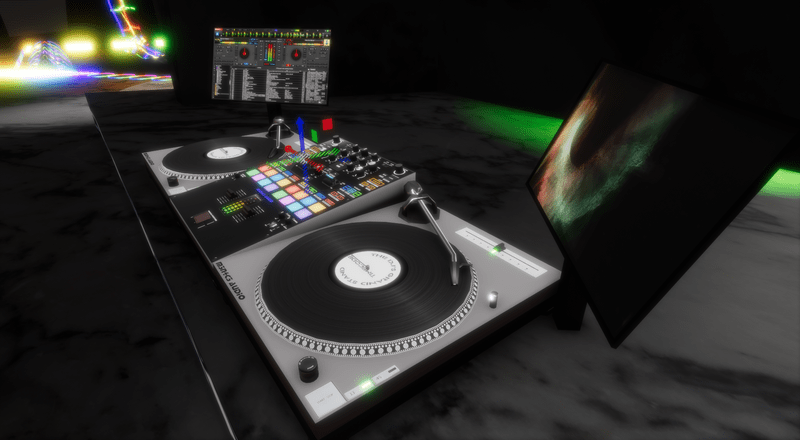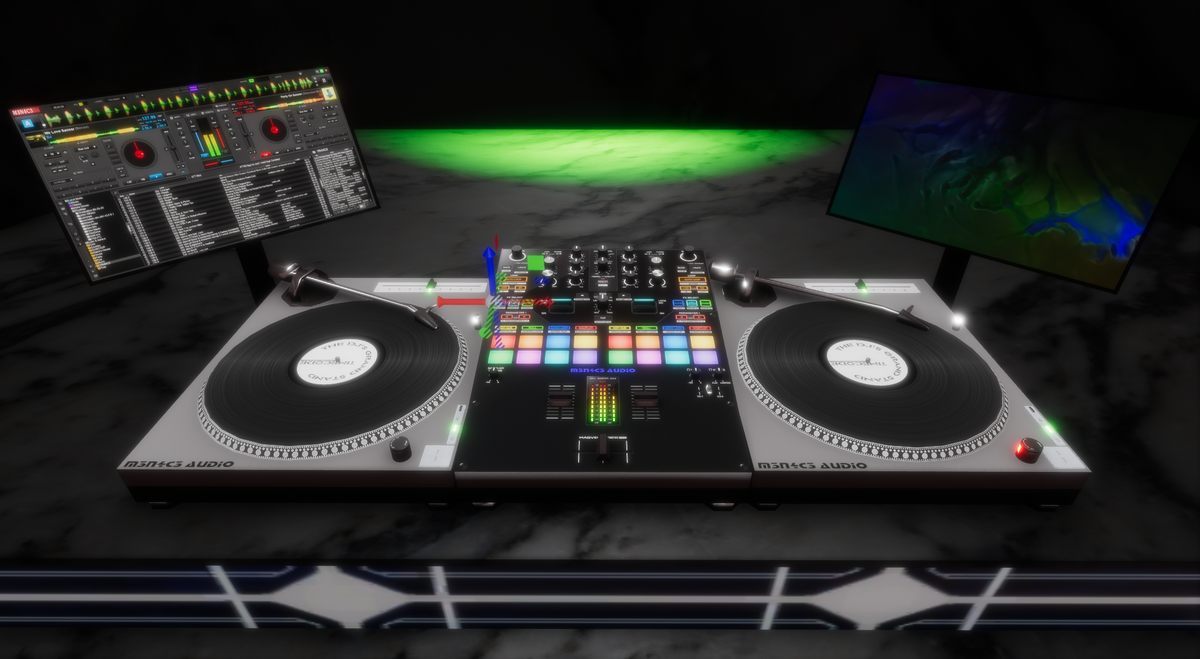 DJ M3N4C3's DJ Setup (Low Poly) verses my first one.. Tables and VDJ Screen are animated and spin. you will need a media script to view videos on the right side screen. enjoy :)