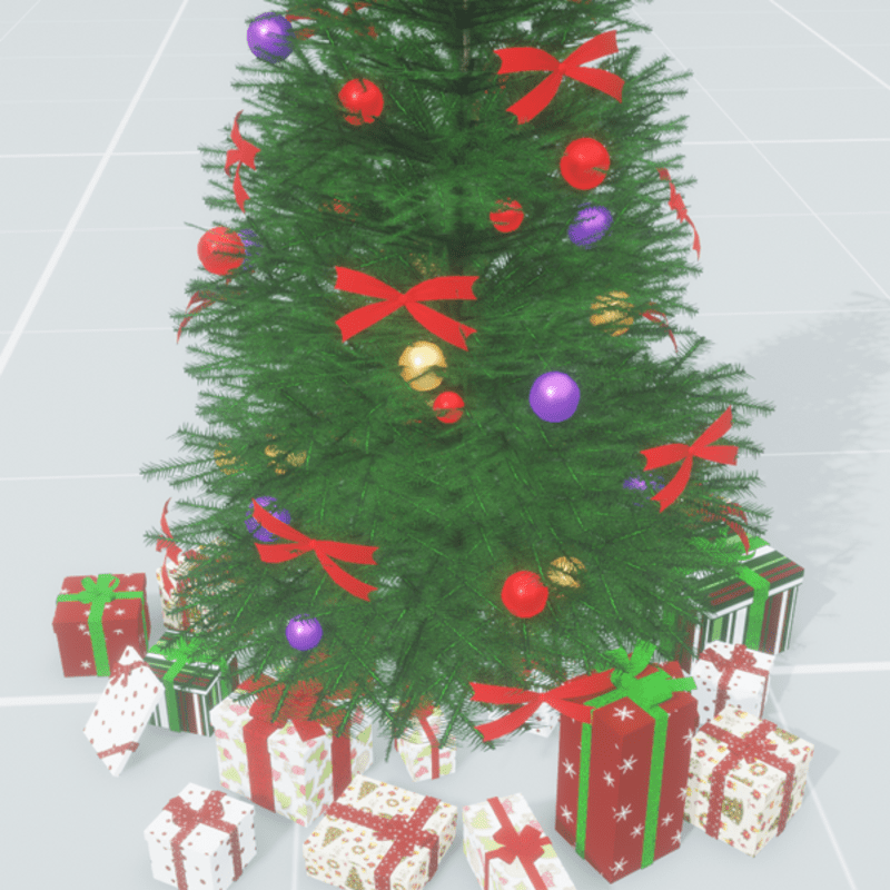 High quality Christmas tree with gift box and colorful ball & bow. High detail of mesh and texture.Very realistic.With collision.