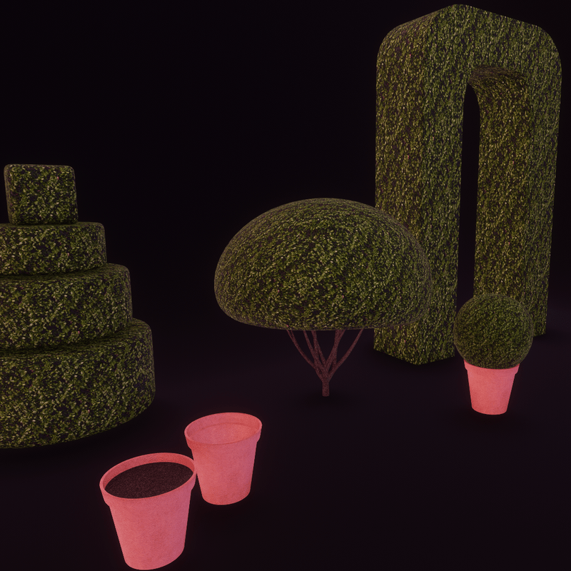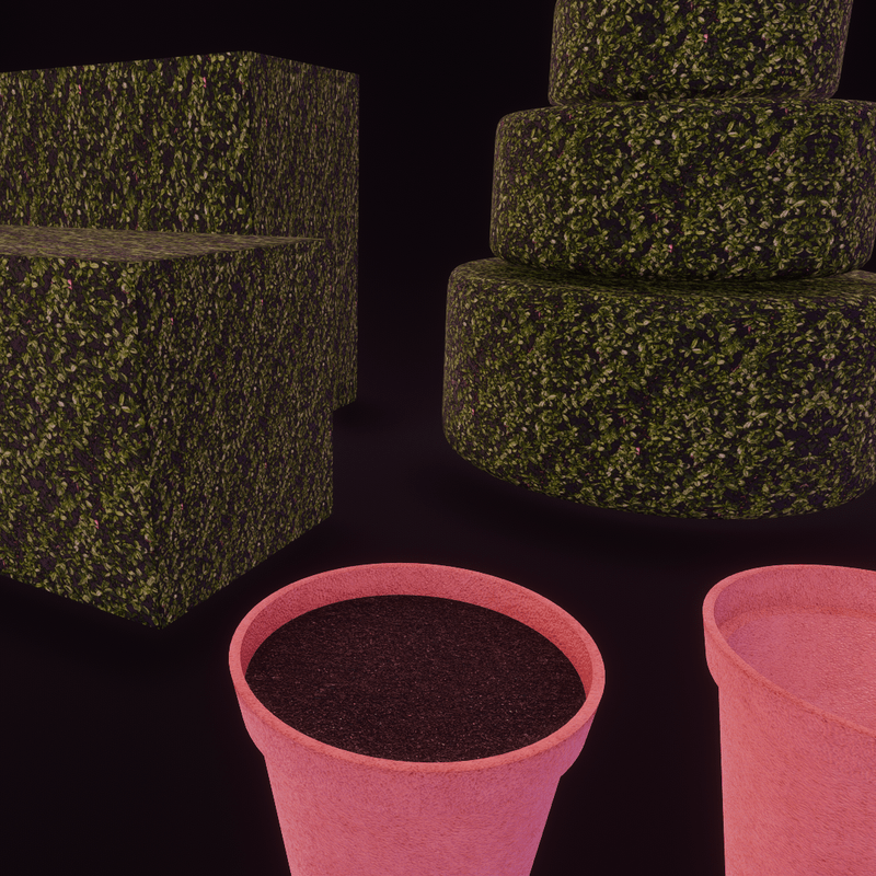 A hedge kit with 8 pieces of garden like items for your magical little paradise. The pieces are separate so you can move and delete what you want. Enjoy. x2 Hedges (Small & Large) x2 Terracotta pots (Empty & Full) x3 Topiary Hedge Bushes (Stacked, Tree like & Round Potted) x1 Hedge Arch