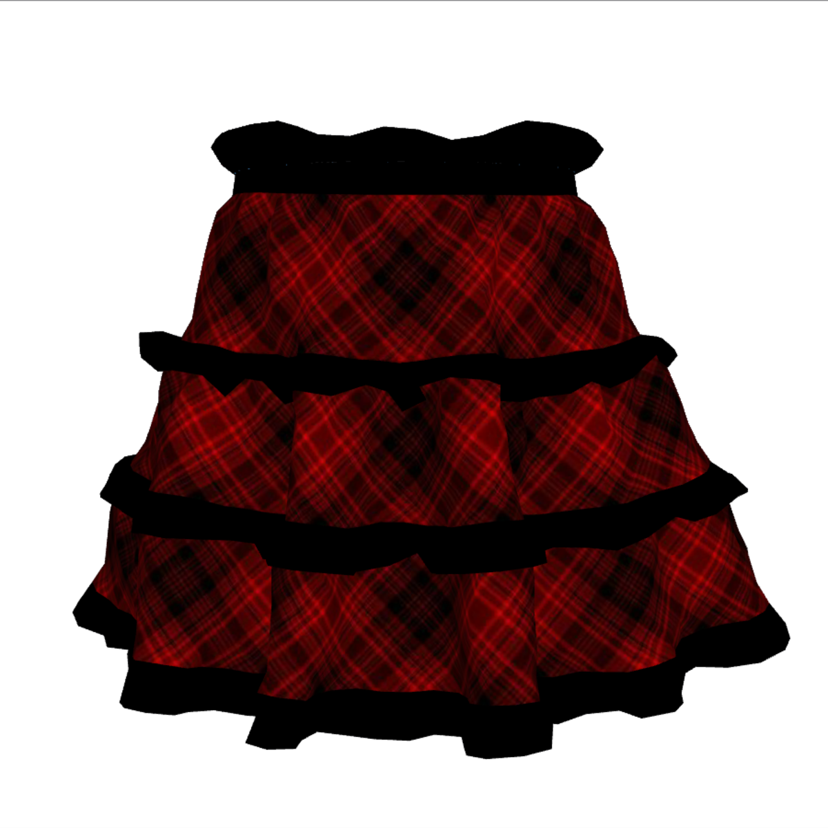 Plaid skirt with ruffles. Please use cloth simulation to fit.