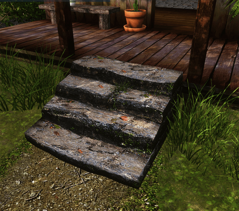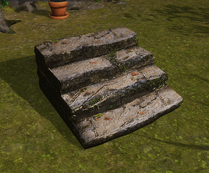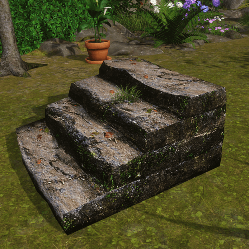 Old stone steps, weathered with moss, leaves and grass. Polycount 327 triangles, physical shape = 16 triangles. See in Sansar experience - https://atlas.sansar.com/experiences/reidparkin/reid-s-plants