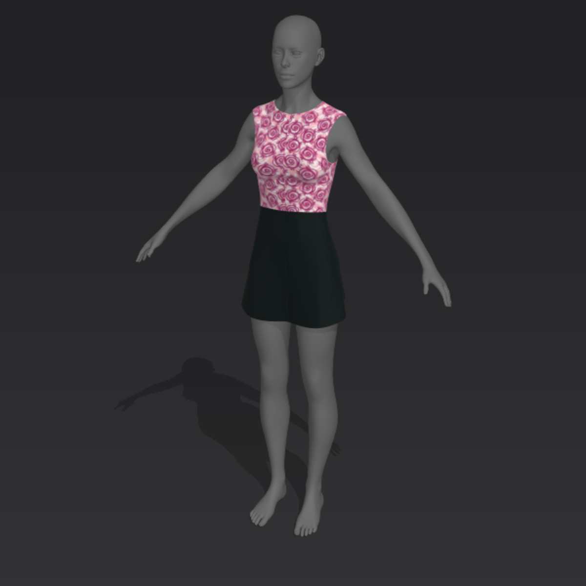 Dress with black skirt and rose-pattern top