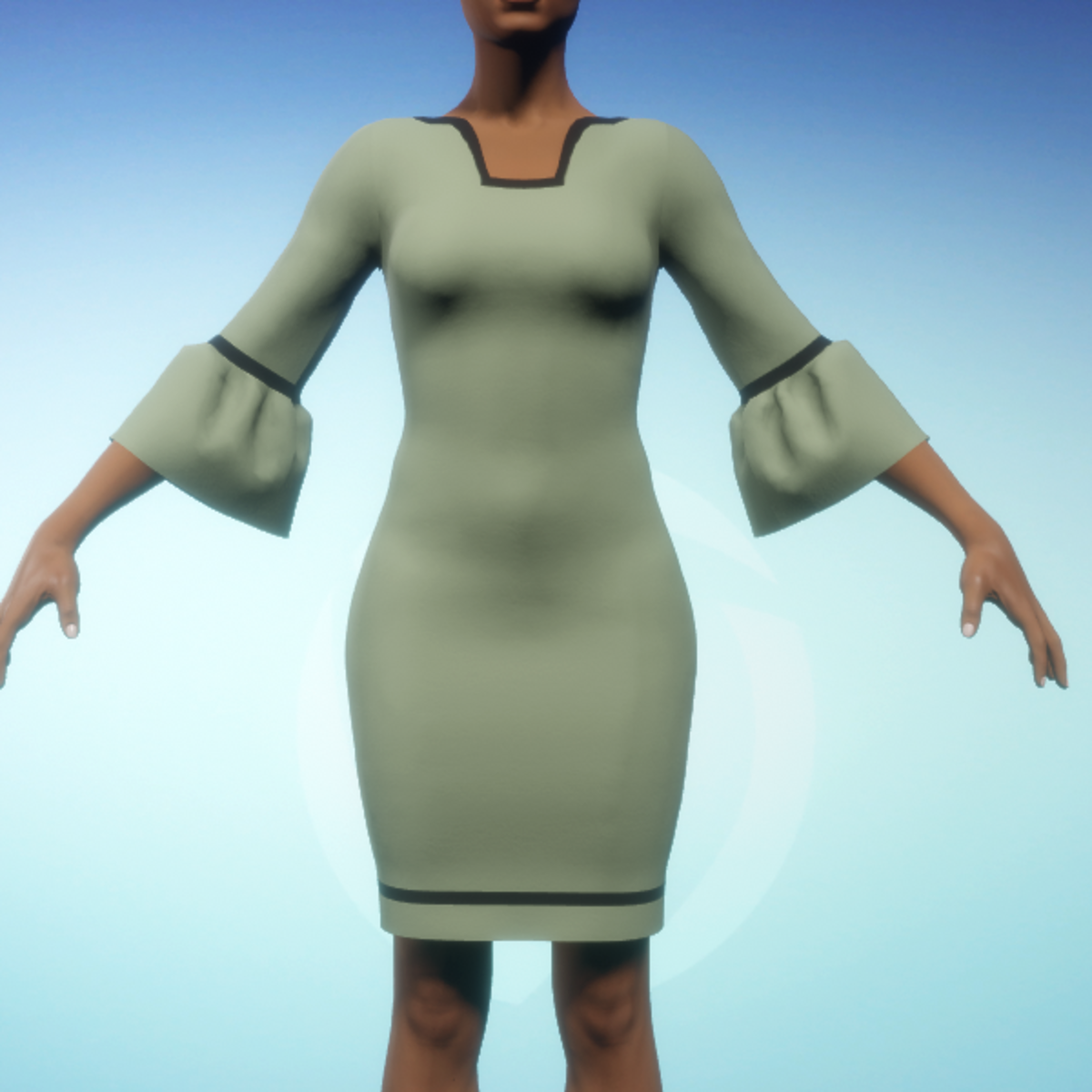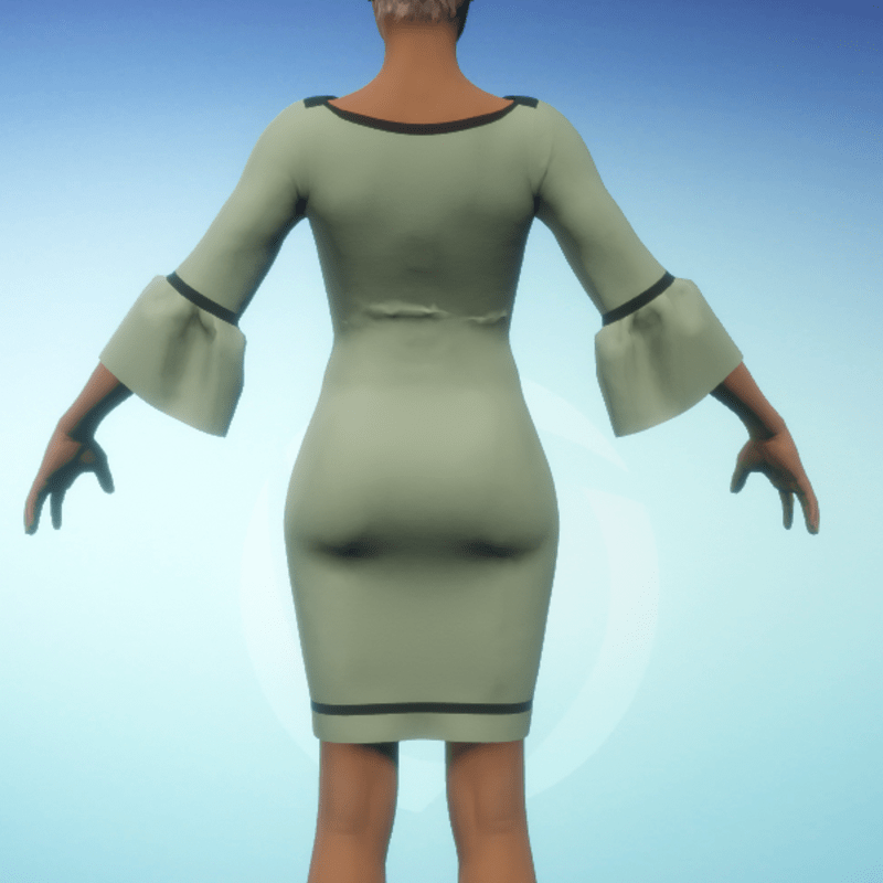 Bell-sleeve Dress - Green and Black