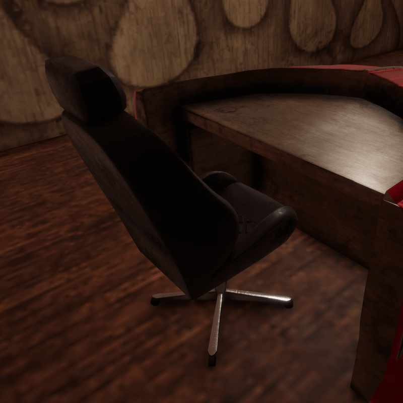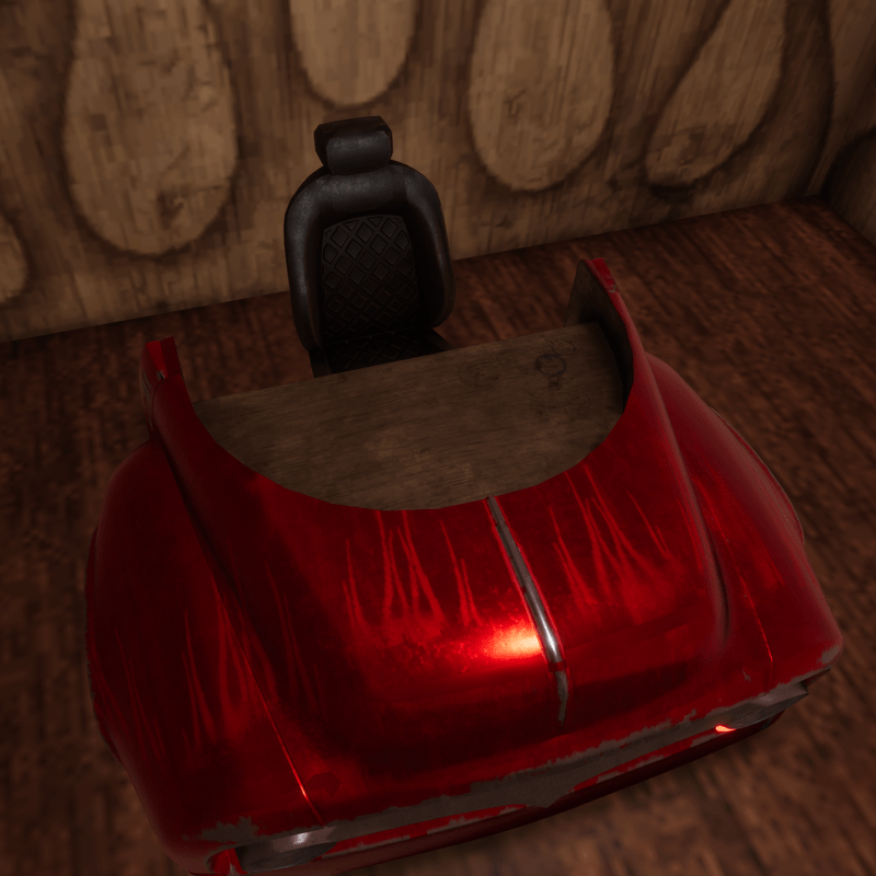 desk made from truck front end (chair can be removed, dj booth ??) can be resold