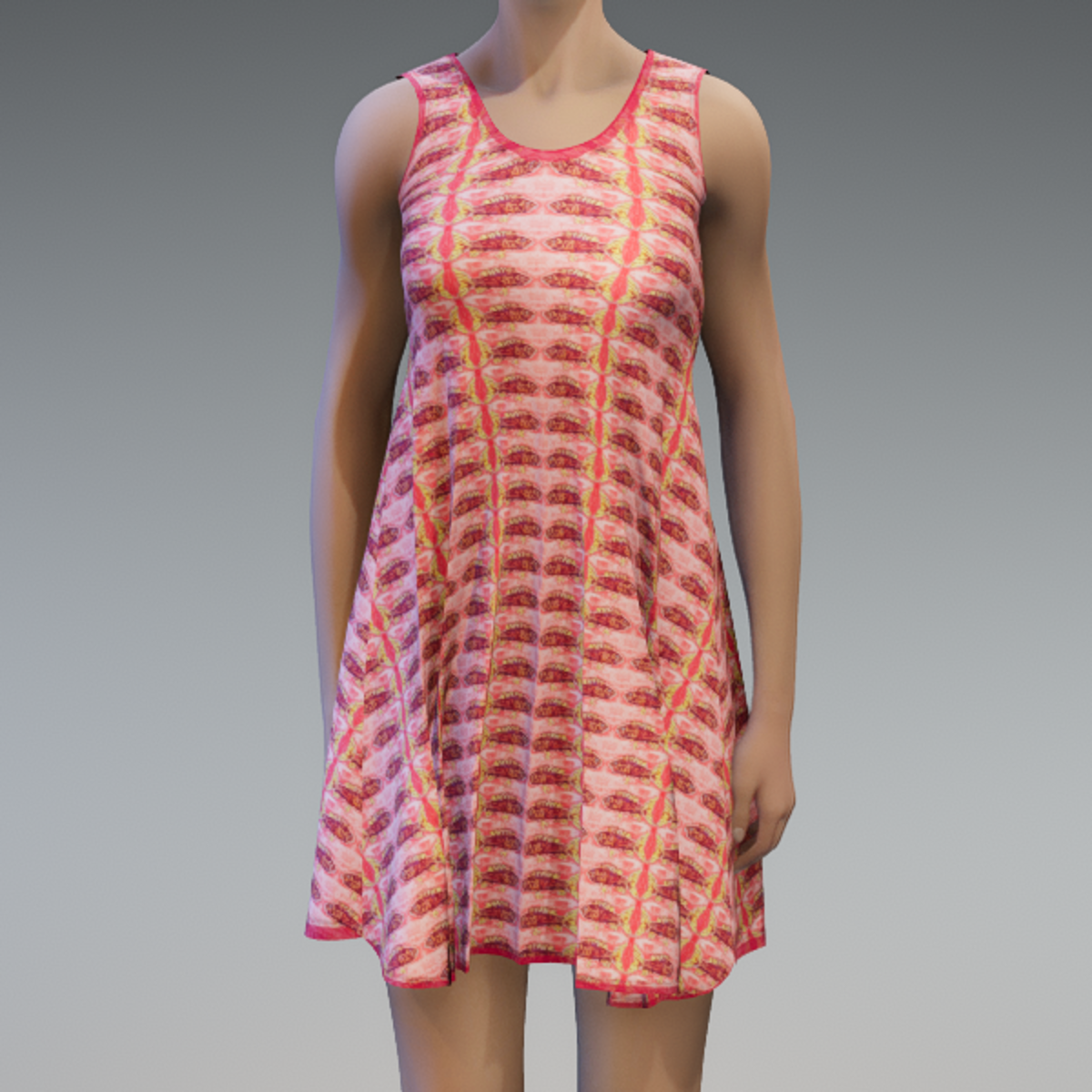 A pretty sleeveless dress with a fish design hand drawn in RL by Daisy. All Daisy's clothes are rigged to AV 2.0.