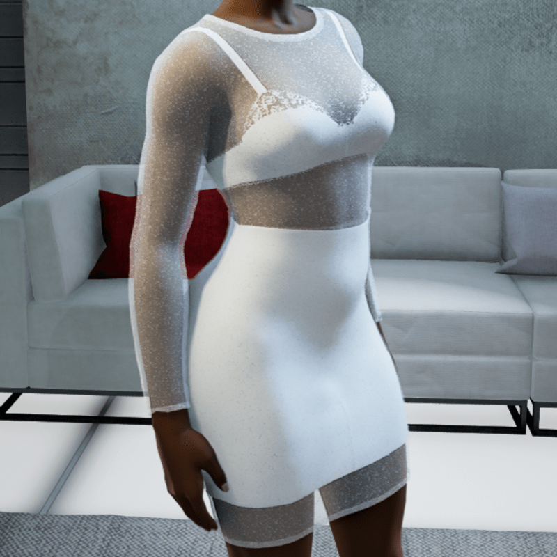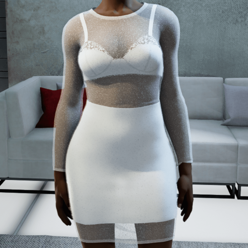 Sheer Dress with under it a laced bra and mini skirt. This design is created with marvelous designer and the texture is manually adjusted to give it more depth and true alpha. If you need a specific color, please do not hesitate and contact me! If you like this design, do not forget to rate it!