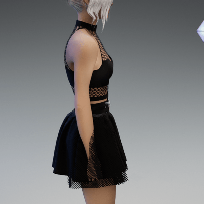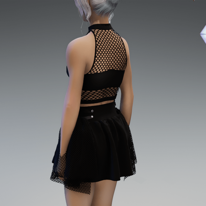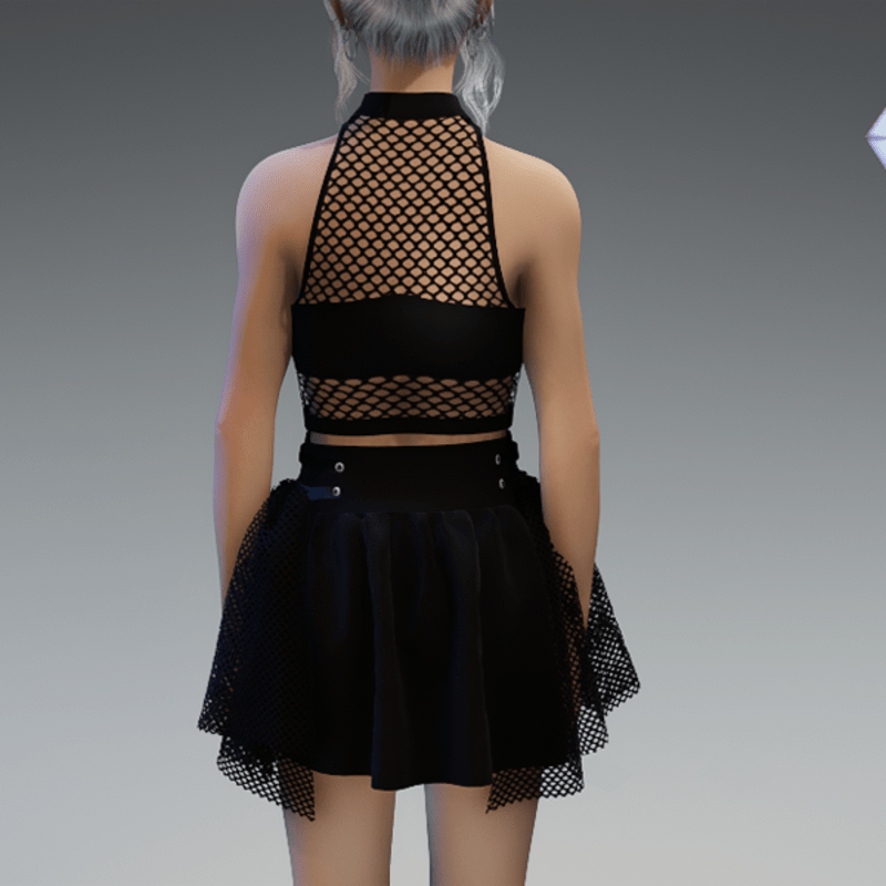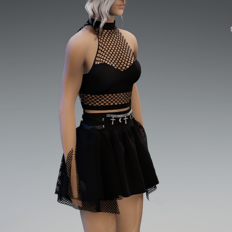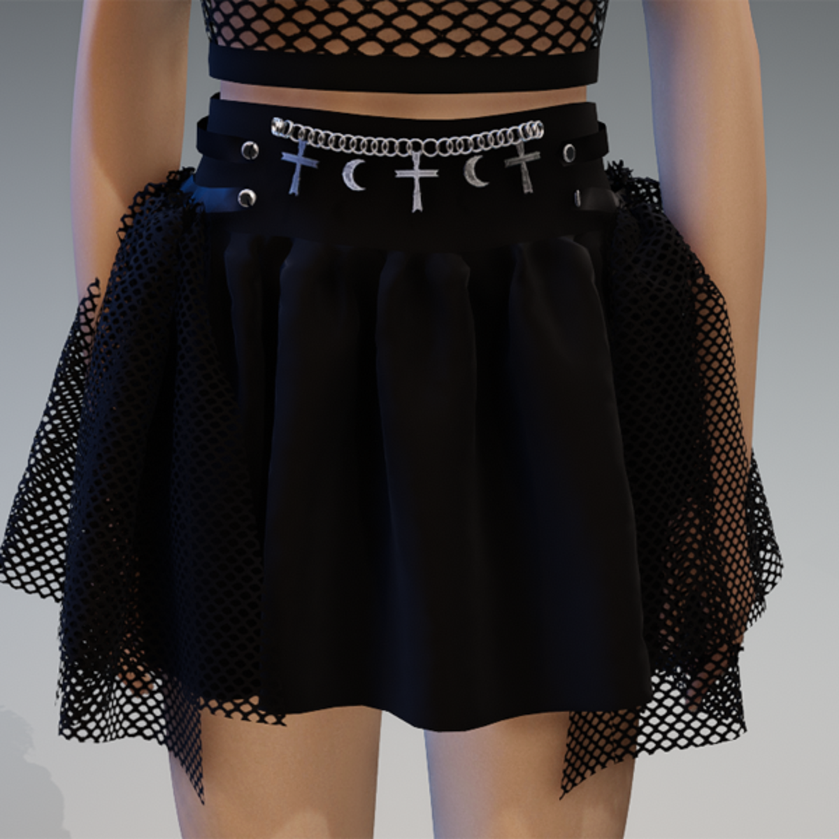 This skirt comes with some net-applications on the side as well as a chain on the front with some cross and moon pendant. Enjoy! <3