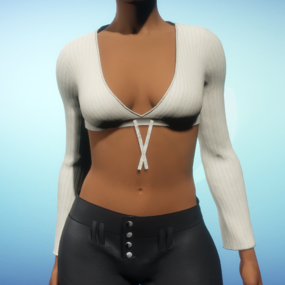 Cropped Long-sleeved V-neck - Cream Knit