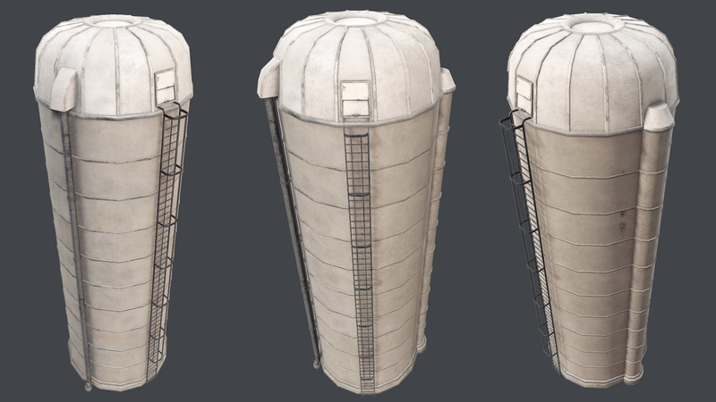 Farm Silo PBR Very Detailed Huge Old Rusty Silo with High-Quality PBR Texturing Fits perfect as Exterior Decoration in landscapes, or as a landmark. The Silo has great details to it, such as old rusty Metal Stairs, to a latch in the top, and a long pipe connected from the bottom and up. The Mesh is unwrapped, and UV Mapped PBR Painted Albedo, Roughness, Metallic, Normal Maps Applied 4096x4096 Texture Maps PNG Low Poly Triangles 5270 Polys 3206 Verts