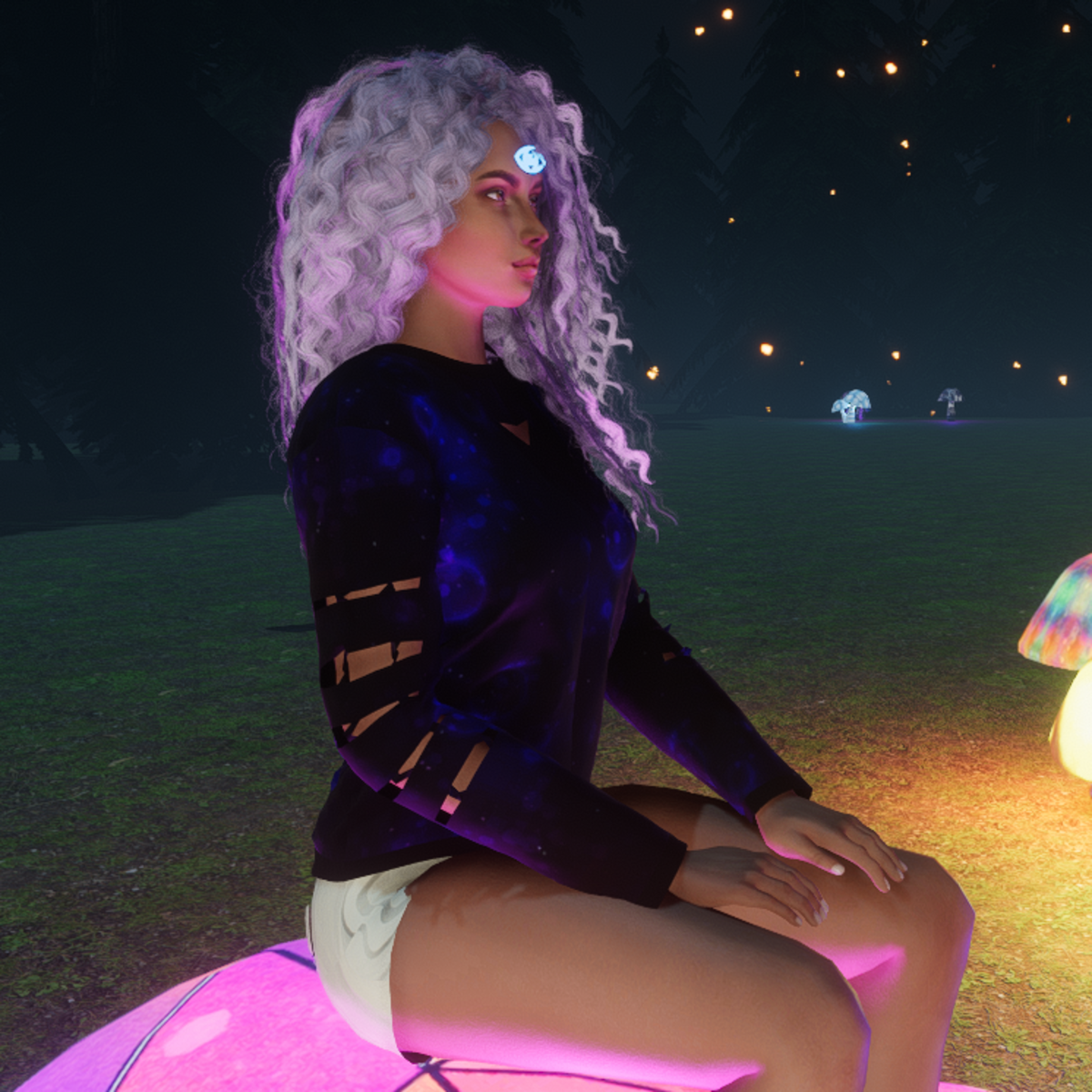 Sweater with cuts in sleeve and space design. Remove hair before adjusting and let it settle into place. Tested on Alina avatar by Cora. Created in Marvelous Designer so you can adjust to your needs.