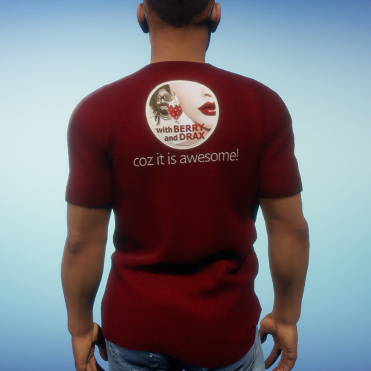 Official Berry and Drax Atlas-Hopping T-Shirt [Berry version!] If you are a fan of our show, pick one up and show your support! These shirts are made by the incredibly talented Solas [store link: https://store.sansar.com/store/SolasNaGealai ] You can simulate and adjust this garment to your liking as it was made in Marvelous Designer.