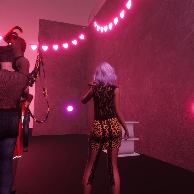 Party dress with sheer lace top and cheetah print bottom. Lace ribbons dangle from the back of the dress. Made in Marvelous Designer so you can adjust to desired fit. Tested on Alina avatar by Cora.