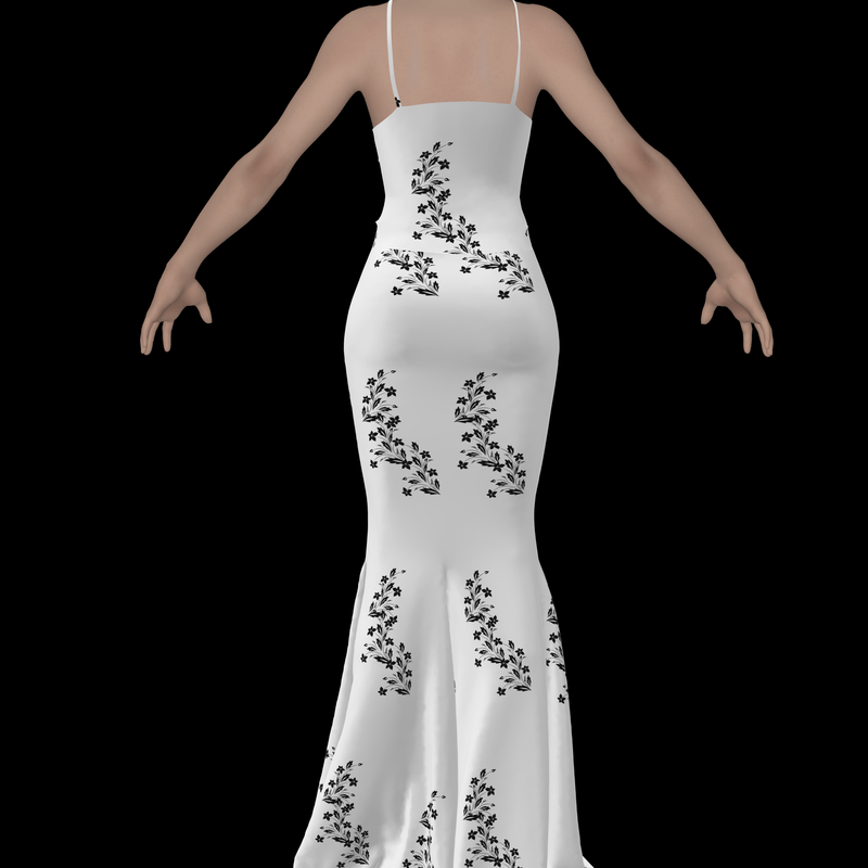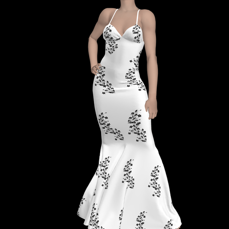 Elegant White Dress with Black Flowers
