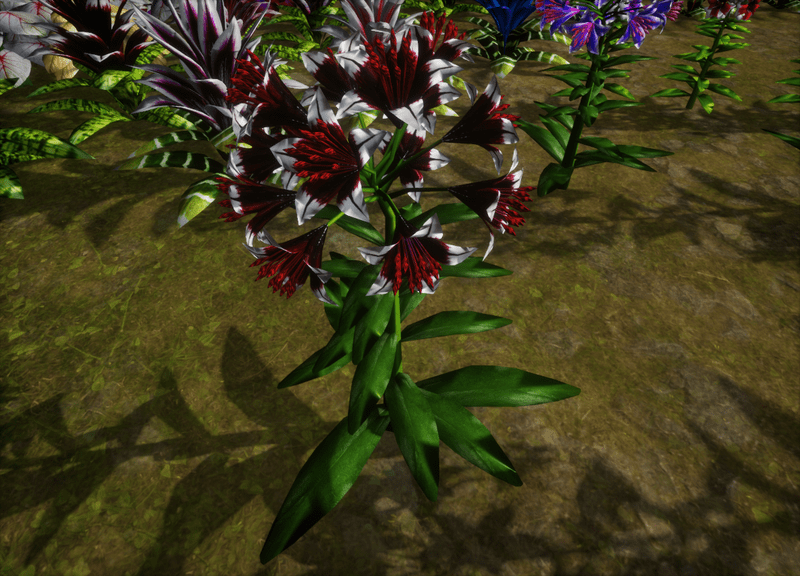 1 Trumpet Lily Plant with about 14 blooming lily flowers and several leaves for your lovely gardens. Polygon count: 15480. There is no collision on this mesh so you can walk through it. I have many colors. To see this flower in Atlas, please visit "LovedWarrior's Ground Plants: https://atlas.sansar.com/experiences/lovedwarrior/lovedwarrior-s-ground-plants" Please note that all my flowers are 100% detailed mesh. Each petal, pollen, stalk and leaf is made by hand and placed by hand. All the textures are also made by me. If you have any flower or plant requests, show me a picture of the flower and I will let you know if I can make it for you. Enjoy!