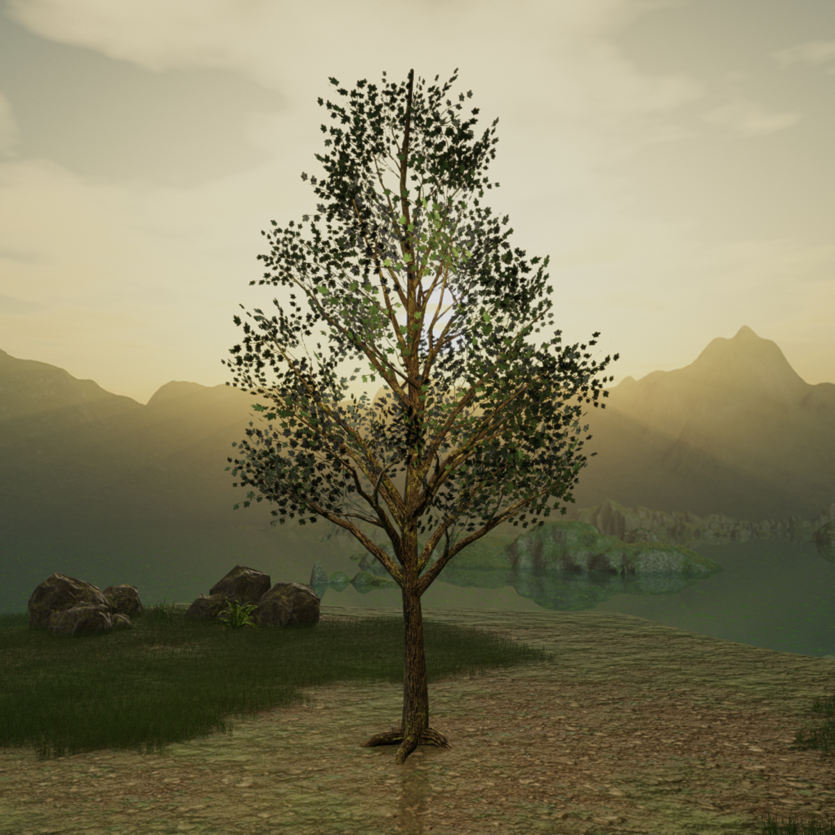 Maple in summer colors. About 20 meters tall, re-size to your needs. Collision: yes. Textures checked after recent updates... no shiny spots where non intended. Store Link: https://atlas.sansar.com/experiences/bluebell/bluebell-home-garden-wip