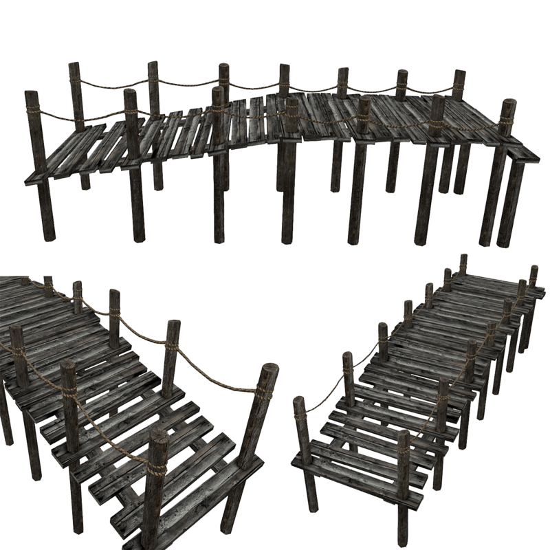 Wooden Dock - Sloping. 3468 triangles. Collision shape - 10 triangles.