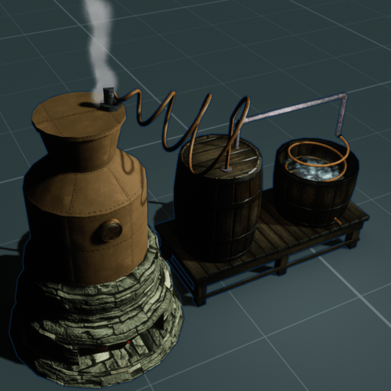 Moonshine still prop for the wild wild west scenes.. includes animated fire textures, animated cooling water, animated steam, animated fire and sound effects..built-in light..to move and scale use Scene object browser...