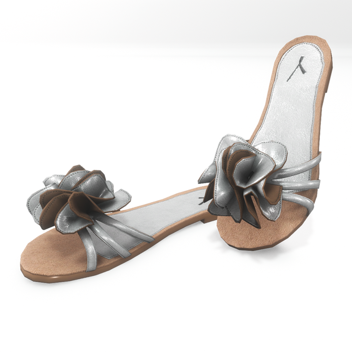 Flat summer shoes for AV 2.0 . They are made of brown and white leather and are decorated with a large flower. Sandals suitable for the city and the beach, match jeans, light dresses and shorts. Get the free demo before purchasing here: https://store.sansar.com/listings/7302b984-28f2-4c50-91d0-921ca25b0259/av-2---flower-sandals--demo