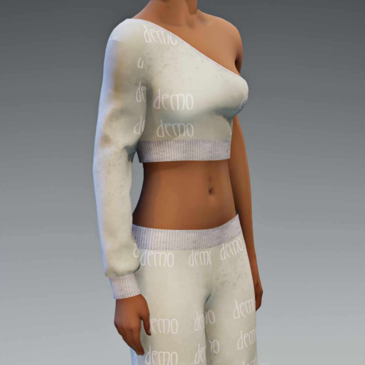 Casual and soft Jogging attire all in one. 2 x 2 ribbed trim, single knit fleece. Default style is with legs scrunched into cropped pants, but they can be pulled down easily or worn one up one down. Camo versions feature ribbing but no knit surface. Ribbing does not show up well on dark colors -- at least in desktop mode :D. Try the demo!