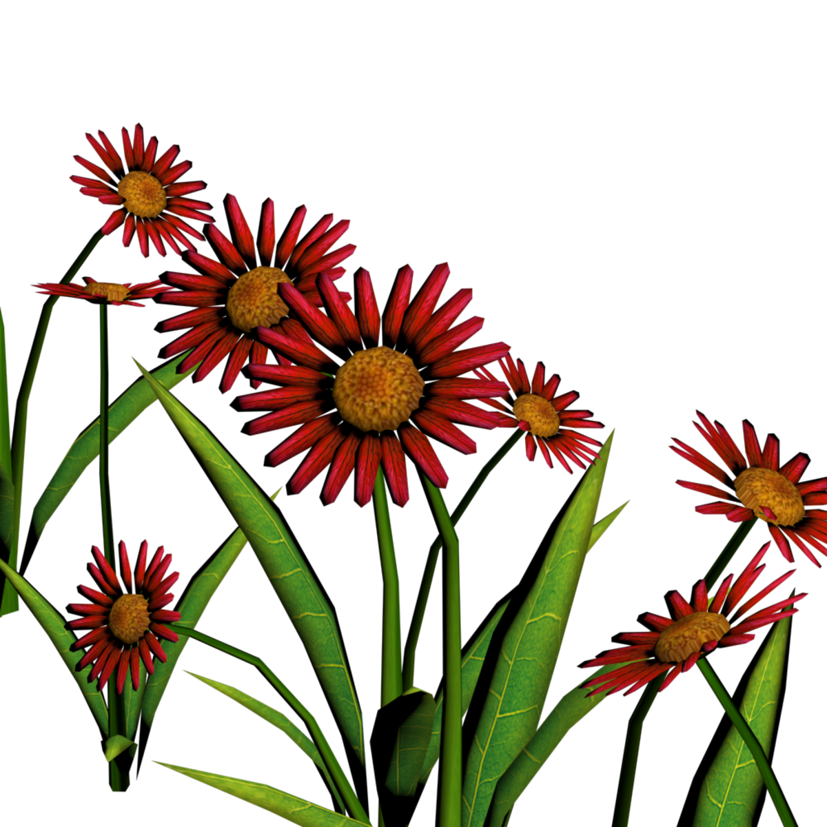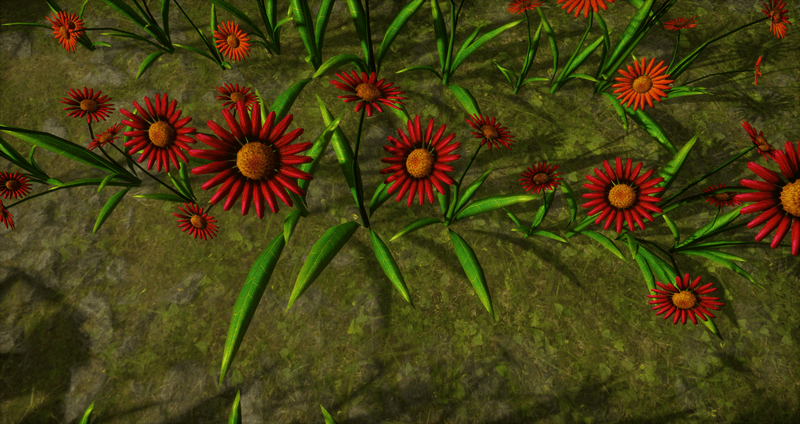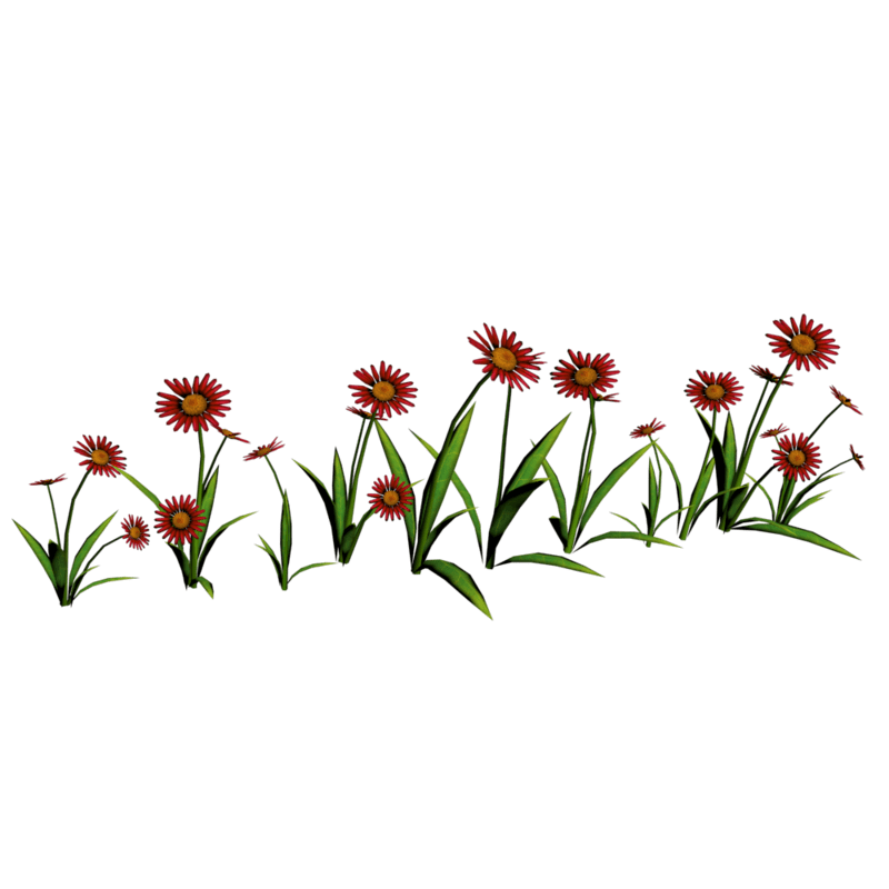 22 Colorful daisies in a straight line for pathways. Polygon count: 11920. There is no collision on this so you can walk through it. I have many colors. To see this flower in Atlas, please visit "LovedWarrior's Ground Plants: https://atlas.sansar.com/experiences/lovedwarrior/lovedwarrior-s-ground-plants" Please note that all my flowers are 100% detailed mesh meaning no flat planes with flower pictures pasted on them. Each petal, pollen, stalk and leaf is made by hand and placed by hand. I only make grass from planes with grass pics pasted on them. All the textures are also made by me. If you have any flower or plant requests, show me a picture of a flower and I will let you know if I can make it for you. Enjoy!