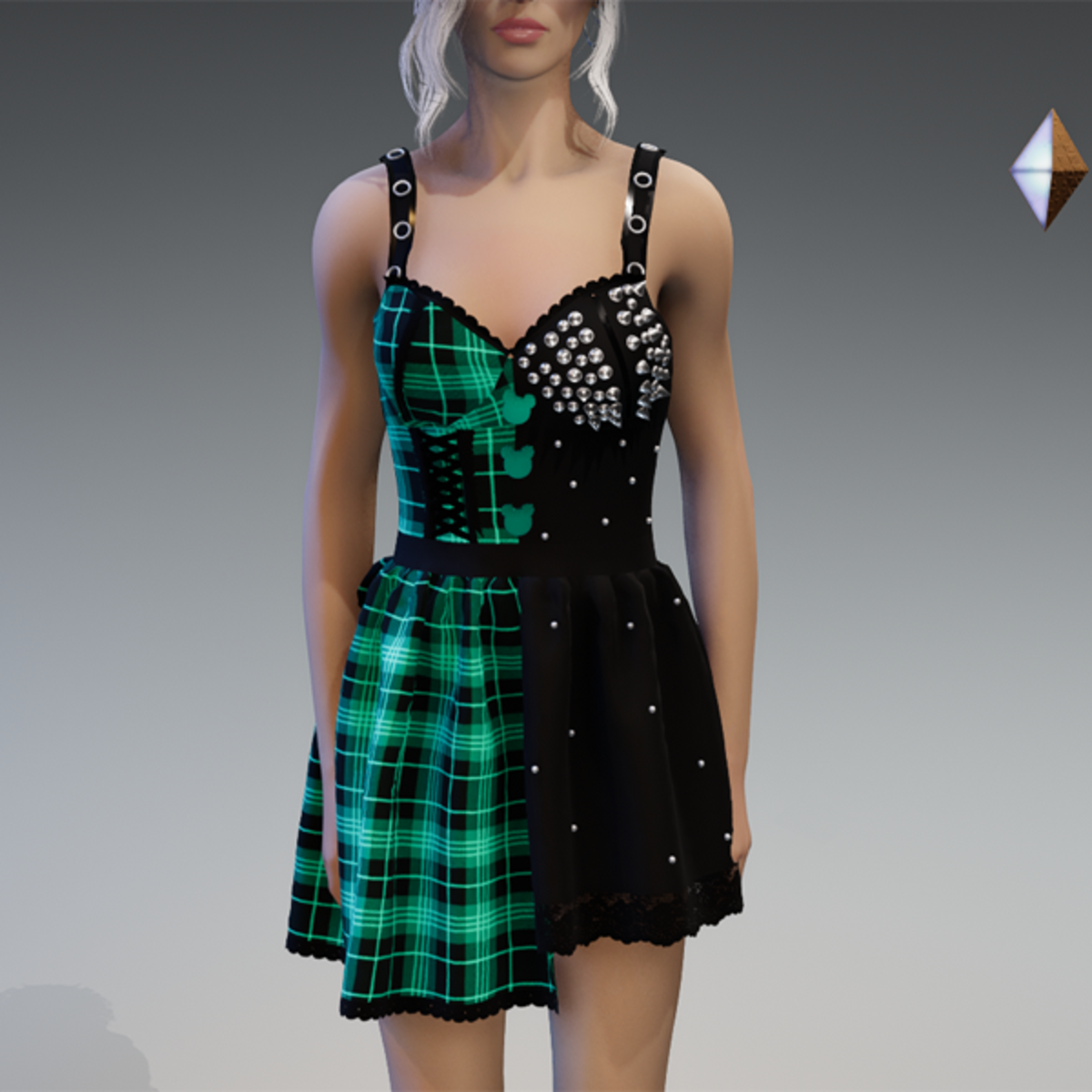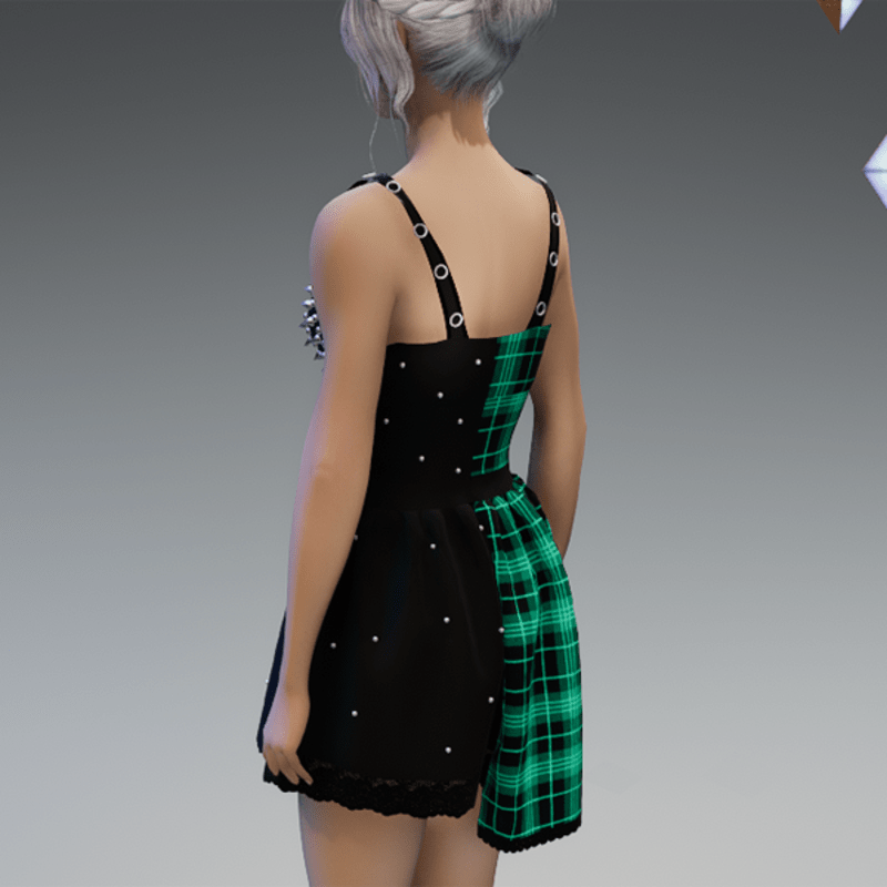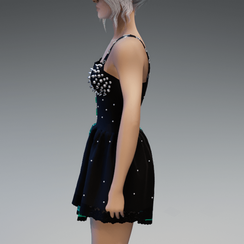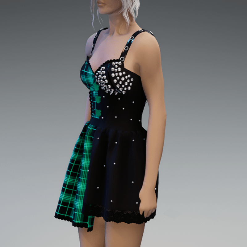 This cute dress comes with two different sides. One side of the dress is longer and comes with some lace and lacing on the front and the other side comes with lots of rivets on it. There are also 3 cute bear-buttons on the front which I did by myself and are the reason why I called this dress "Kuma". Enjoy! <3
