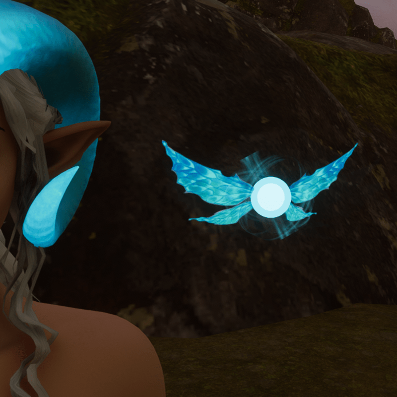 Animated glowing blue pixie pet; Worn in the Necklace Slot Animated wings and magic particles, see example gif: https://gyazo.com/4fb97d1c3c967ba91de4aadf73aea64a Wearable with other slot variants and FULLY TRANSFORMABLE! Textures hand drawn by NovaVoidSpirit