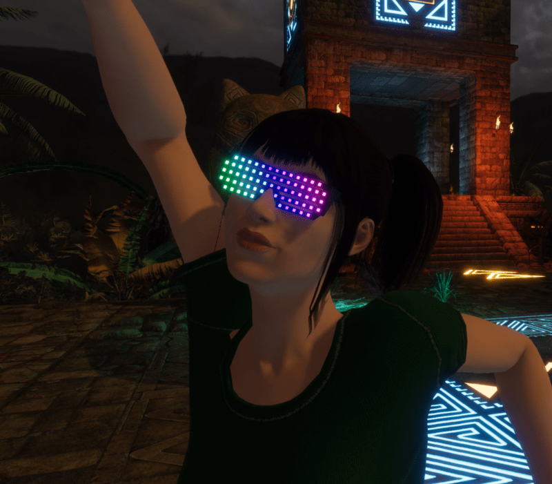 Awesome RGB Disco glasses,the RGB flows from one side to another at steady pace. In game footage: https://gyazo.com/ad8a196a88f20d089306649b7bdde9b6
