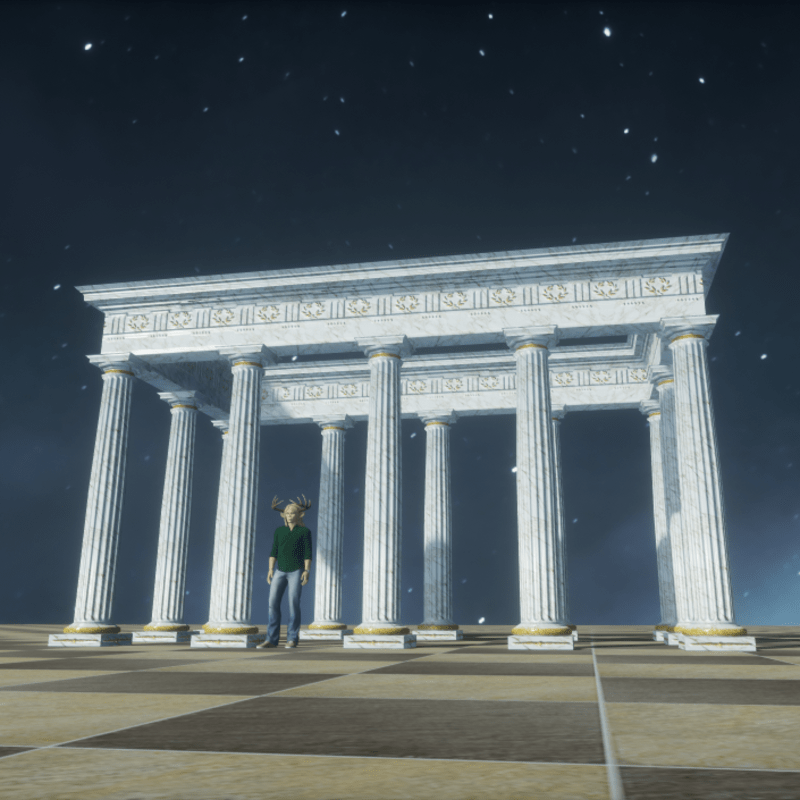THE GRECO ROMAN DORIC ENTABLATURE Of the three main orders of columns from classical antiquity, the Doric Order is the simplest and sturdiest. It has an elegant grace that is not overly decorated. This entablature (a top moulding bit that sits atop columns, which you can buy separately) is carved of solid white marble with shining gold accents, stands 1 meter high, and 2 meters wide. It follows closely , the proportion standards as laid out by the roman and renaissance masters. Buy the matching columns, stairs, floors, and balustrades, and you will have a full set to create your own personal paradise.