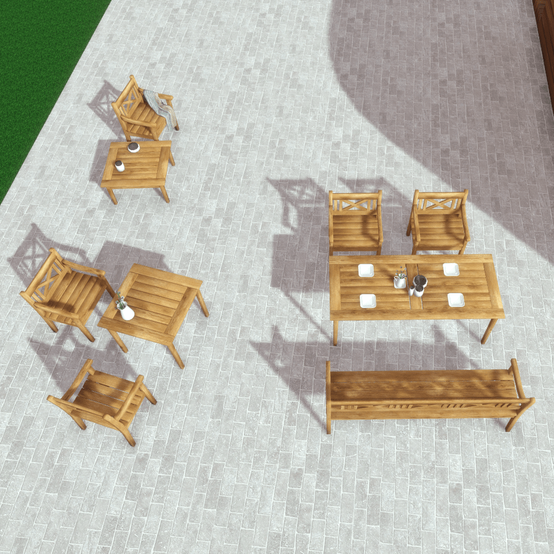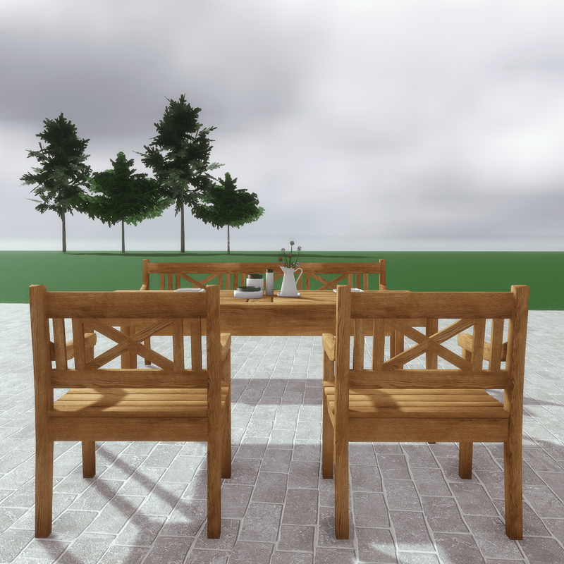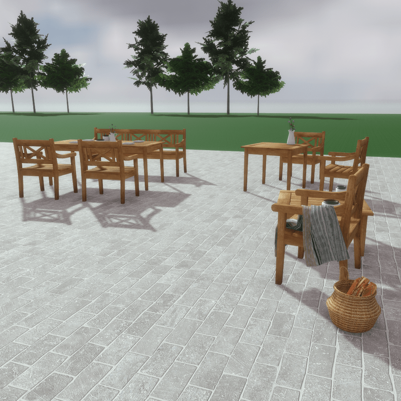 A set of garden, patio, deck wooden furniture and accessories that includes: - A wooden armchair (with collision) - A wooden bench (with collision) - A large rectangular wooden dinner table (with collision) - A small square wooden dinner table (with collision) - A wooden coffee table (with collision) - A woven basket (with collision) - Fire woods - Plates - Pitcher - Allium flowers - Ceramic and glass vases - A blanket that can be used for the armchair or the bench. All items are editable. You can take a closer look here: https://atlas.sansar.com/experiences/luise/studio-lamda