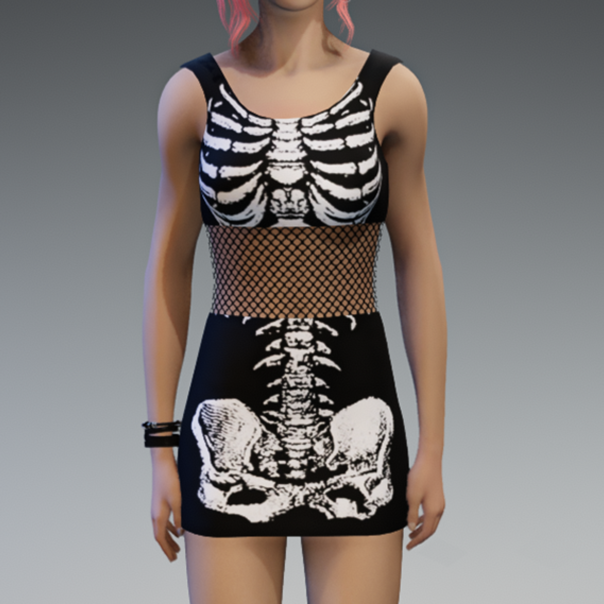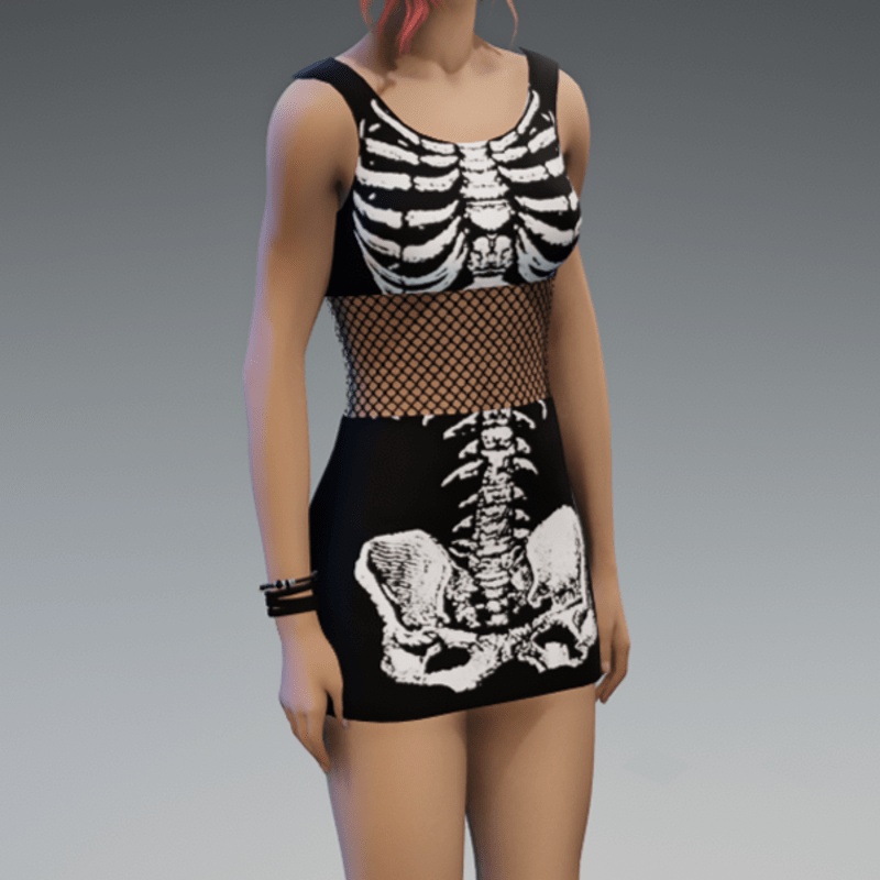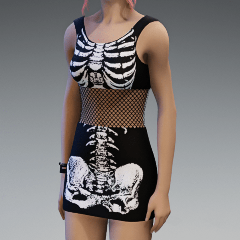 Ready for some Halloween-vibes? This one comes with a fishnet-detail in the middle of the dress and a cute white skeleton-fabric. Of course you can always wear those dresses! (and don't forget to click the "adjust item"-button) Enjoy!