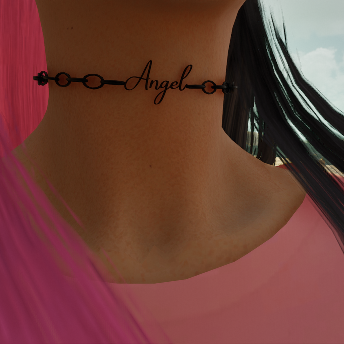 cute choker, it is rigged to the neck so avatars with thicker necks may not be able to wear it, rigged on the default avatar so the neck thickness isnt really skinny to start out with. More chokers to come :D comes in multiple colours.