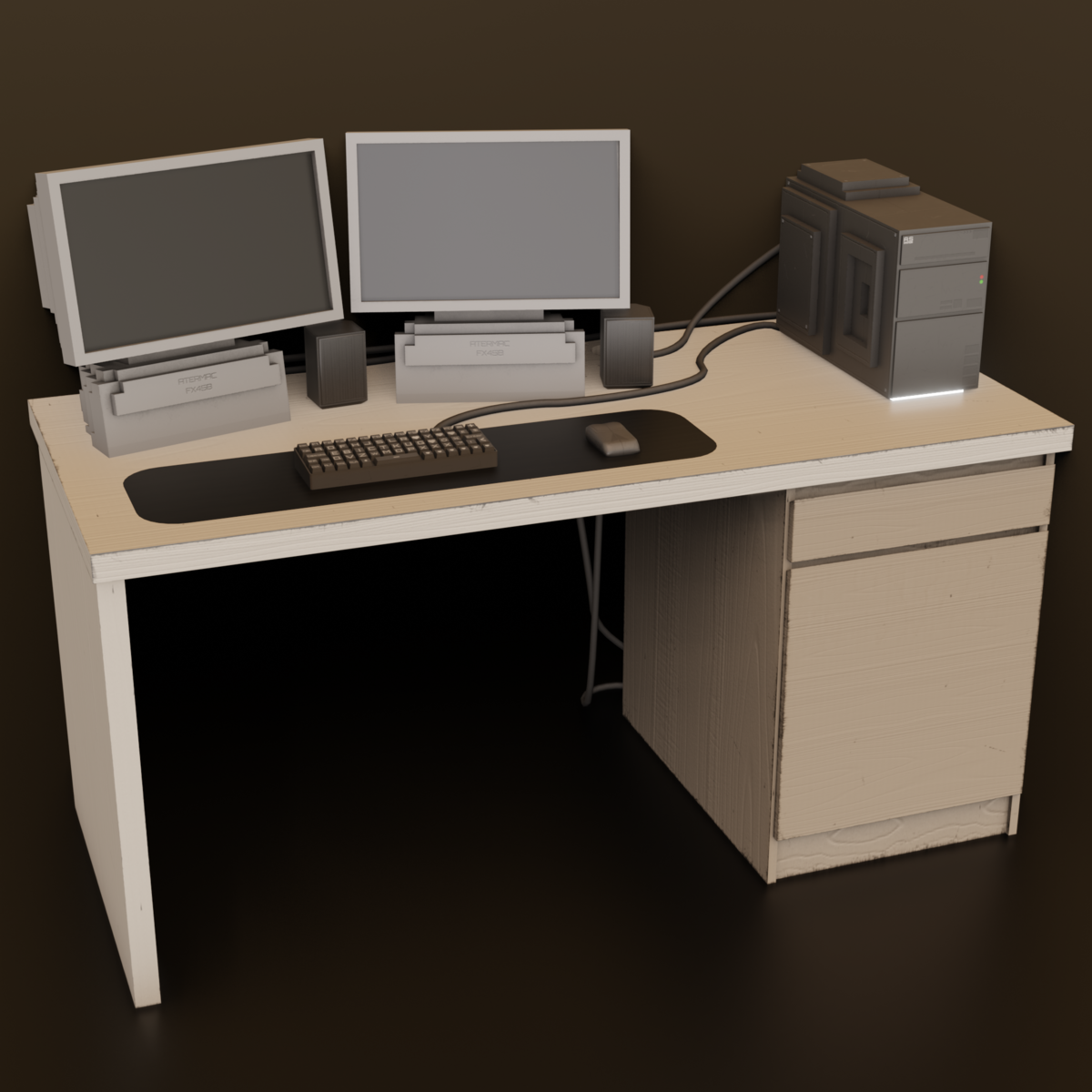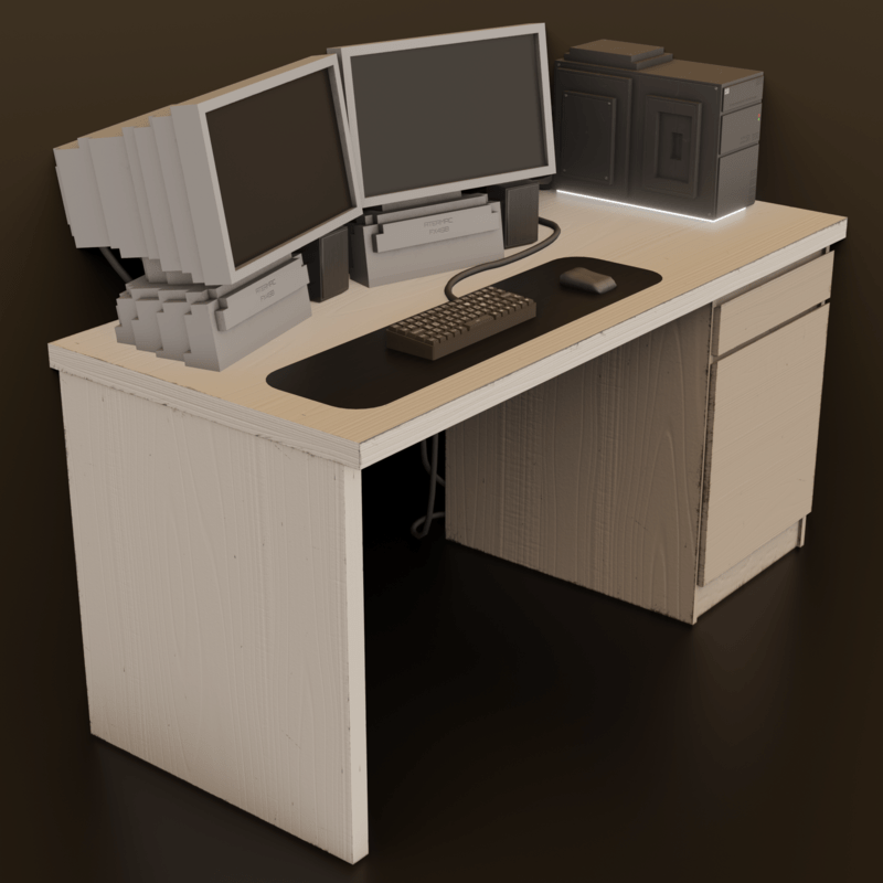 Computer and accessory desk set Original with a cubic and simple style.