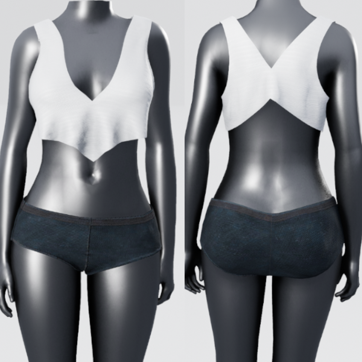 Denim Shorts and Top Set. Check my store for the High Waist Fringe Sude Skirt Get Demo Here: https://store.sansar.com/listings/78b6de70-24be-4cc9-8ce8-9f24d44fdb05/denim--shorts-and-top-set---demo Trying on the available Demo is the best way to assure your satisfaction with quality and fit. The lighting isn't the best in the lookbook and the shoulders seem to fit funny in the lookbook as well, so I recommend wearing the demo in world to see how it truly looks on you. Visit my inworld store experience to find discounted items that or not available on the marketplace and also look for miniature butterflies to find free mystery gifts! https://atlas.sansar.com/experiences/lonaleelancaster/lona Made in Marvelous Designer and can be adjusted to fit most avatars. Please try a demo to assure fit and satisfaction. To learn more about transforming and adjusting Marvelous Designer clothing visit this link: https://help.sansar.com/hc/en-us/articles/115005693363-Fitting-Marvelous-Designer-clothing-to-your-avatar#some-tips