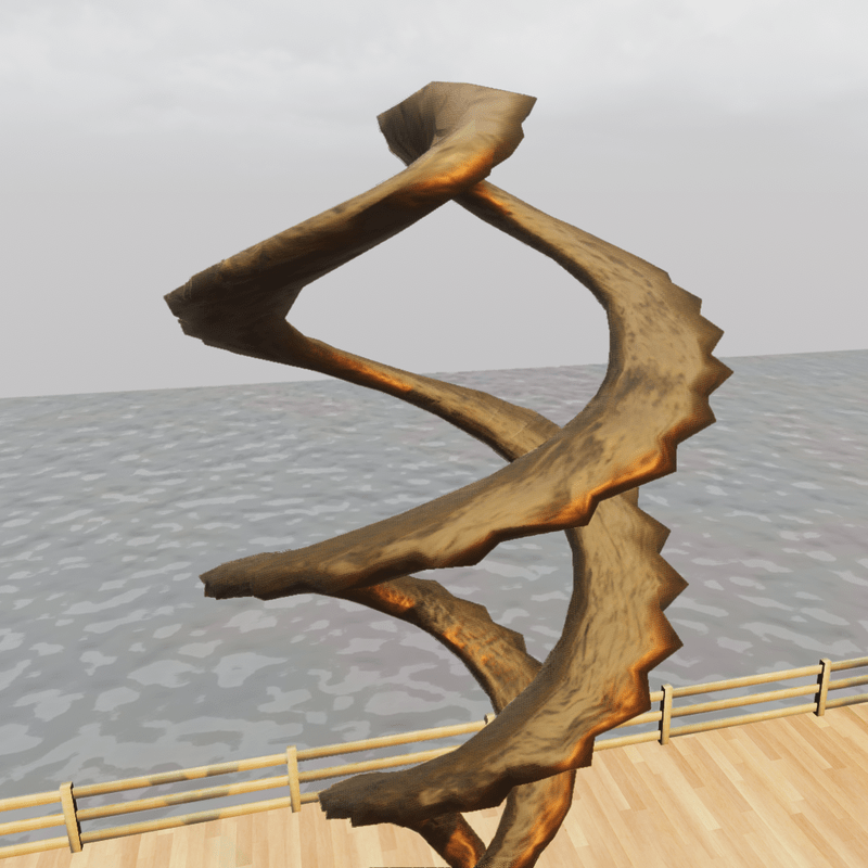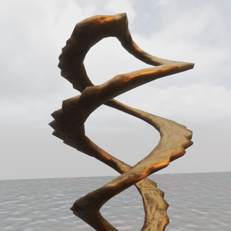 A bare bronze sharp pointed, twisted spiral sculpture with rotating animation. - Diffuse, norm, metal and roughness maps. - Rotates gracefully - forever! - Basic collision. - Rescalable. - Low poly (1398 tris). - Editable parameters, e.g. to change the rotation speed. - It's shiny! View the item in-world at: https://atlas.sansar.com/experiences/fiddybux-2071/fiddyland-base