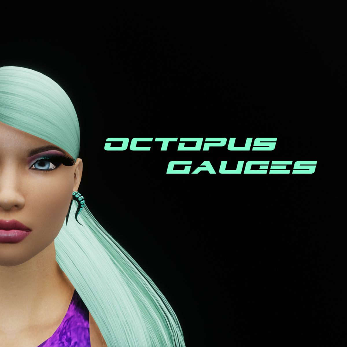 - Octopus Tentacle Gauge Earrings (Onyx Black Teal)