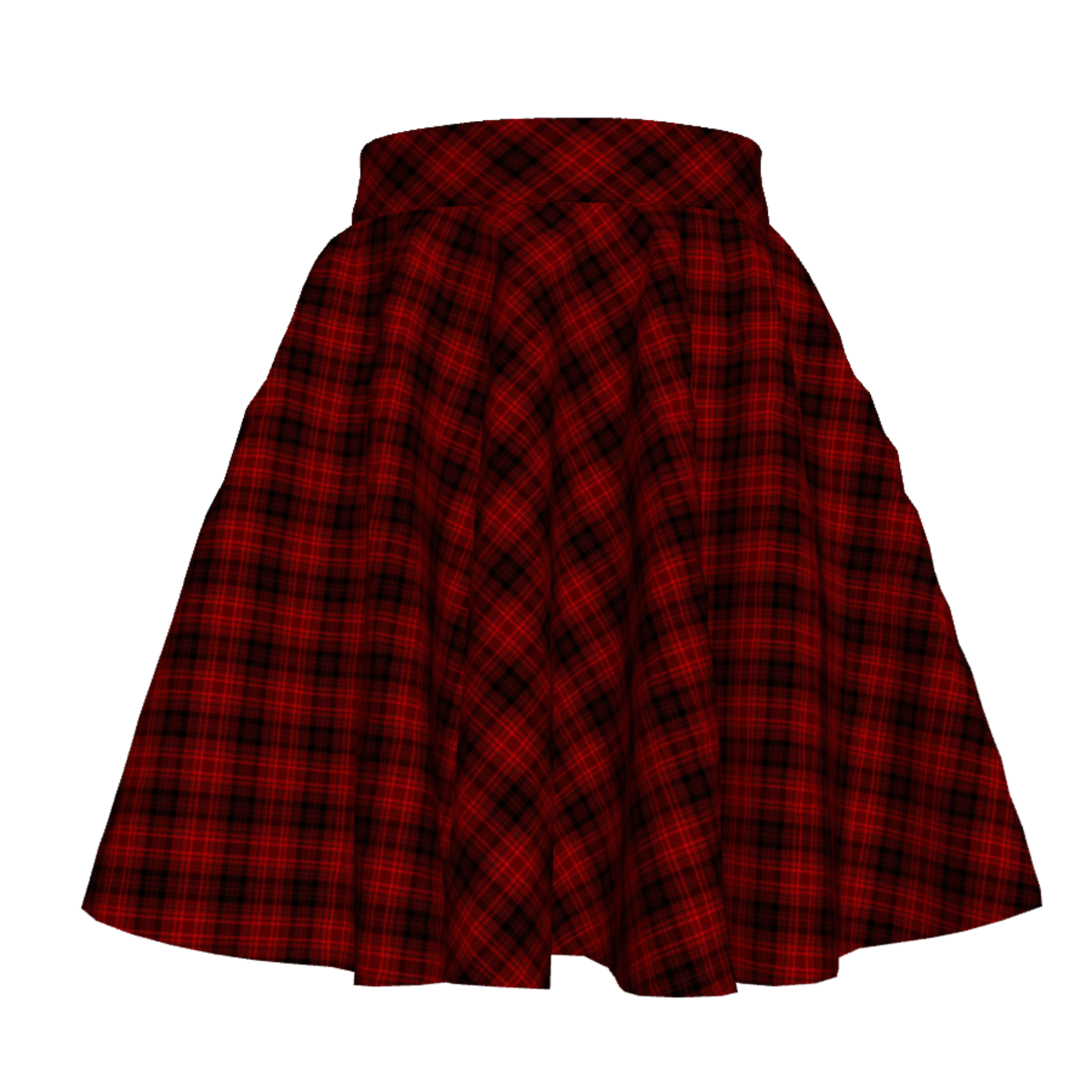 Plaid skater skirt in red. Please use cloth simulation to fit.