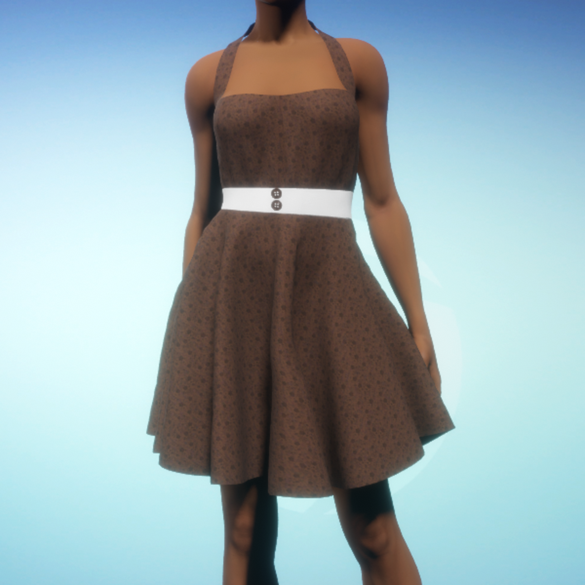 Vintage halter-top summer dress in a flowery print and a white belt. By Sweet Distractions
