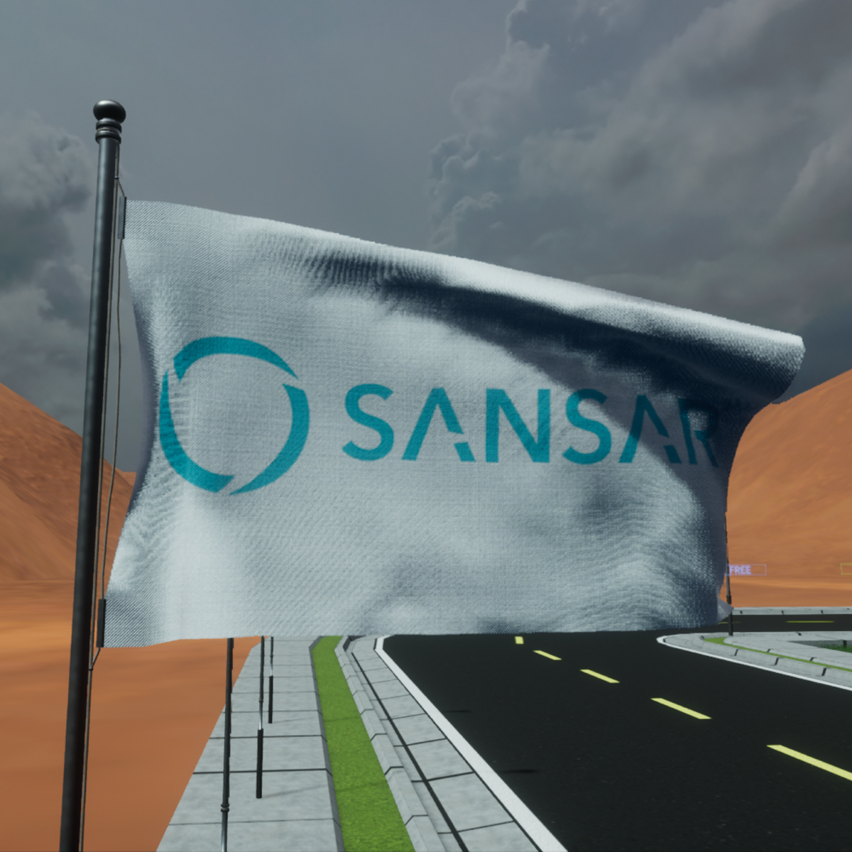 Animated SANSAR flag on white fabric. With animation waving in the wind. It is placed on a 4 meter pole. All permissions enabled except meterial flag. Only available: https://atlas.sansar.com/experiences/fernandop/tka-jumble-sale Don't forget to rate the product.