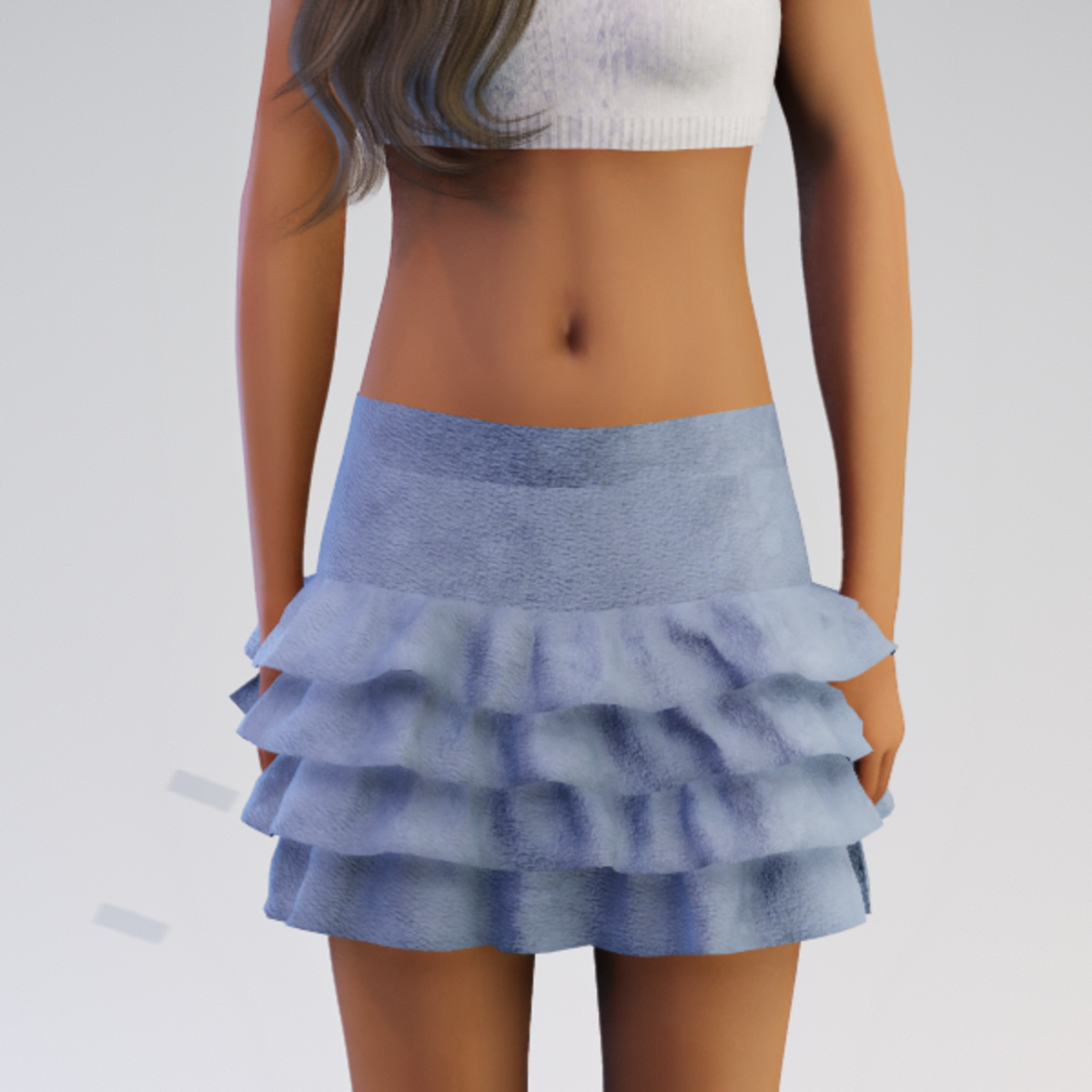 Darts, waistband and LOTS of ruffles make this little skirt the bell of the ball. Silky fabric. Fits Avatar 2.0 without adjustments. Try the DEMO!