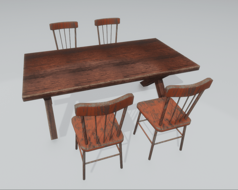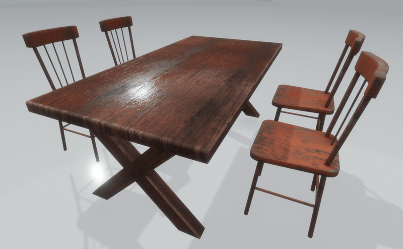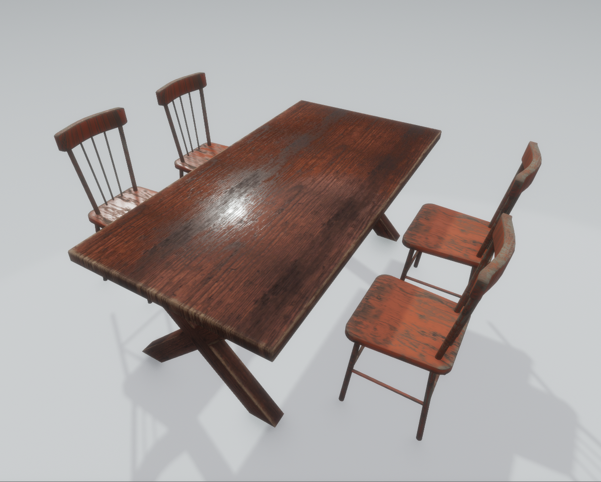 Very nice old dining table set. Not scripted. Set contains 1 table and 4 chairs.