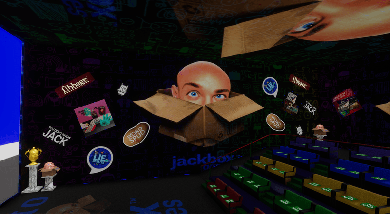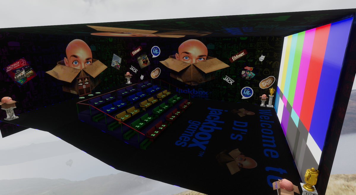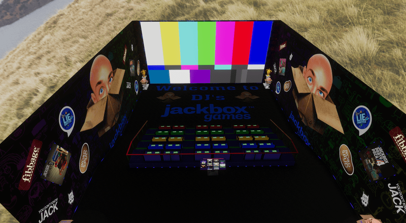 Full Seated and scripted Jackbox Party Room. This Jackbox theamed room is a great addition to you places to hang out and stream a game of JACKBOX Games with your friends. Everything hand crafted by "DJ M3N4C3" to feel like your in the game.