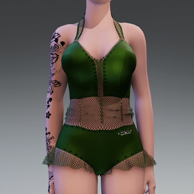 GRETA BODYSUIT_ ( TOP_ W_ SHORTS_ ) GREEN