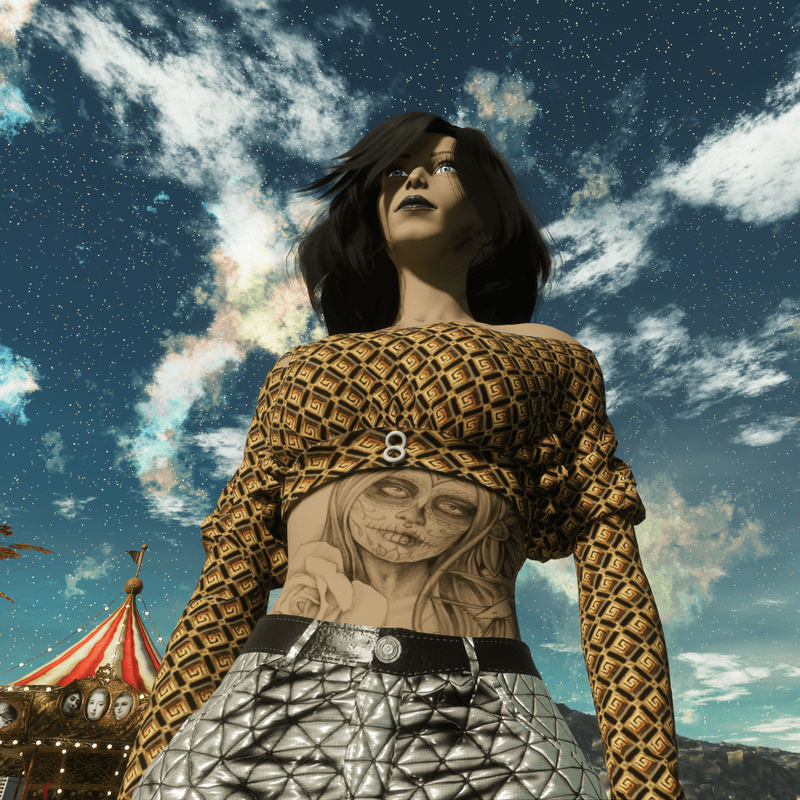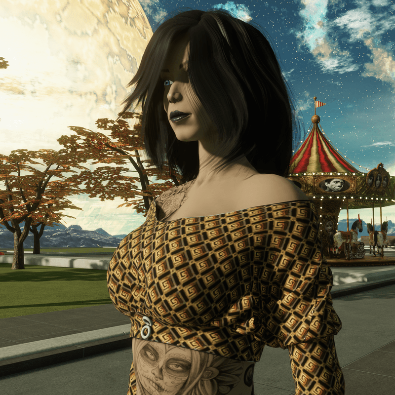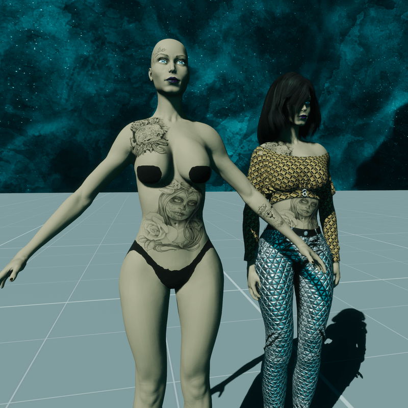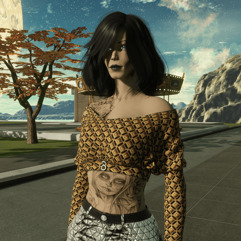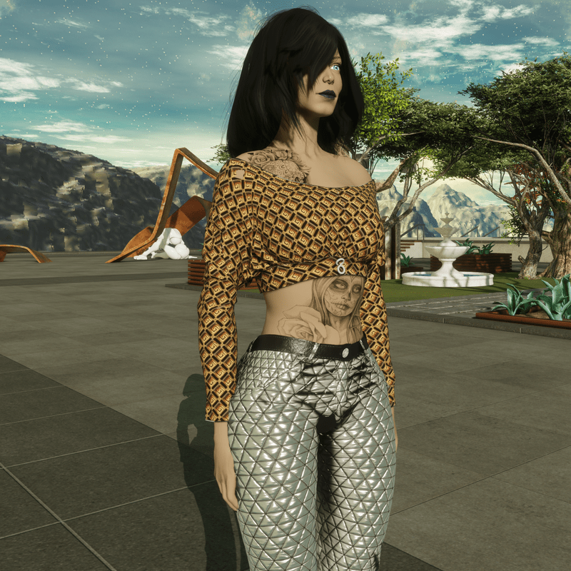Blaire is a female human avatar. Gold diamond grill in her mouth. cool tattoos. great cool different look Making your virtual world real!