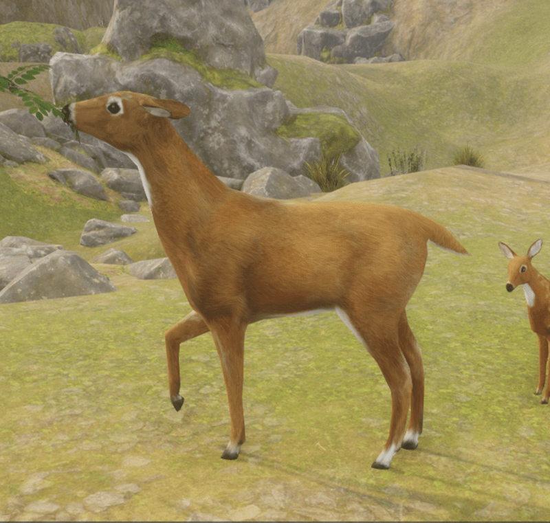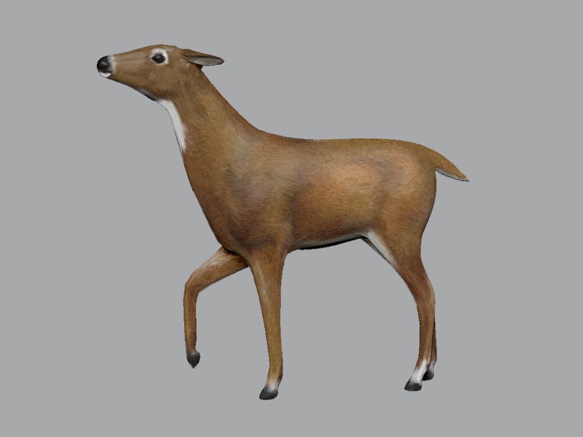 Doe Deer, her head raised for grazing on leaves or checking wind No collision mesh. Original Artwork 5k poly Texture 1024 x 1024