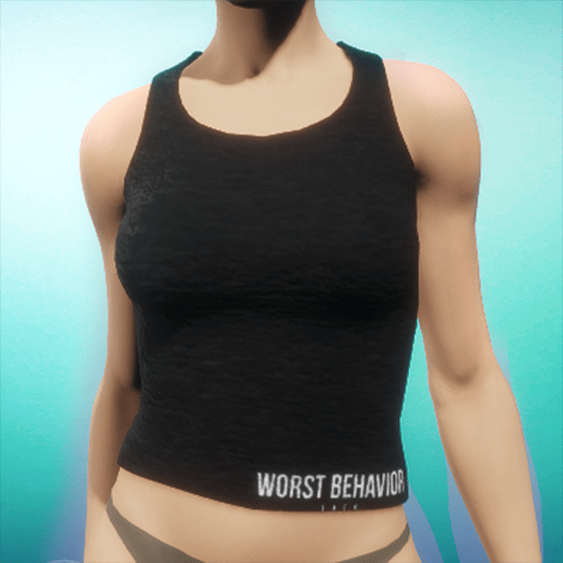 A simple cotton tank top in black with the "worst behavior" inscription.