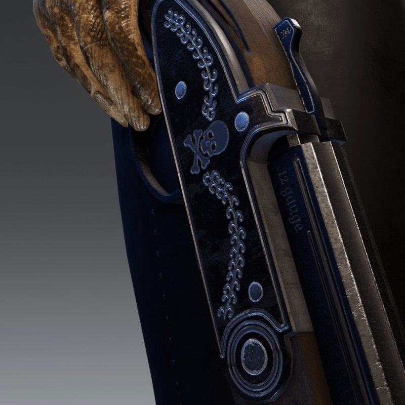 - Double barrel (over and under) sawed off shot gun (attachment)