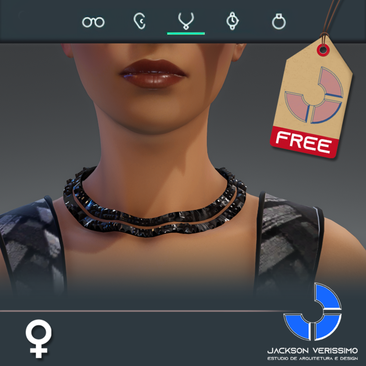 A Nice Necklace with two Ribbons of Greebles. 2k PBR Textures. Good Match in female avatars 2.0 of Sansar. Maybe a little adjustment in others humanoids avatars. Try it! Its free.